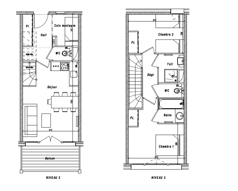 3 pièces + coin montagne Sud confort 60 m2 en duplex au 2ème étage sans couchage dans la salle de séjour