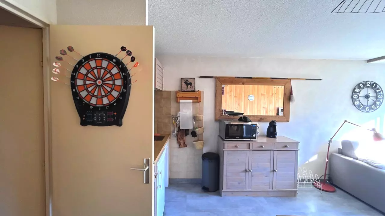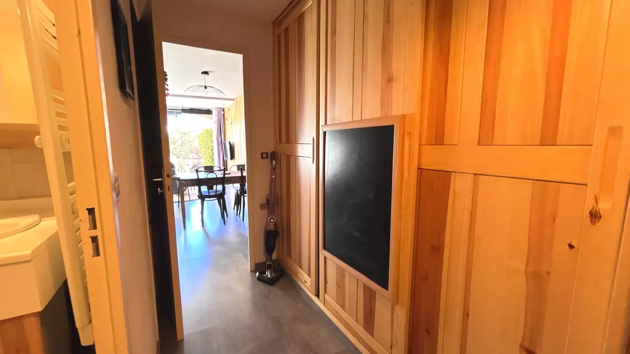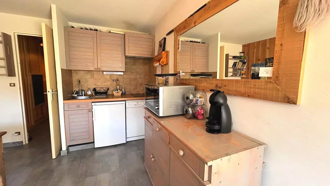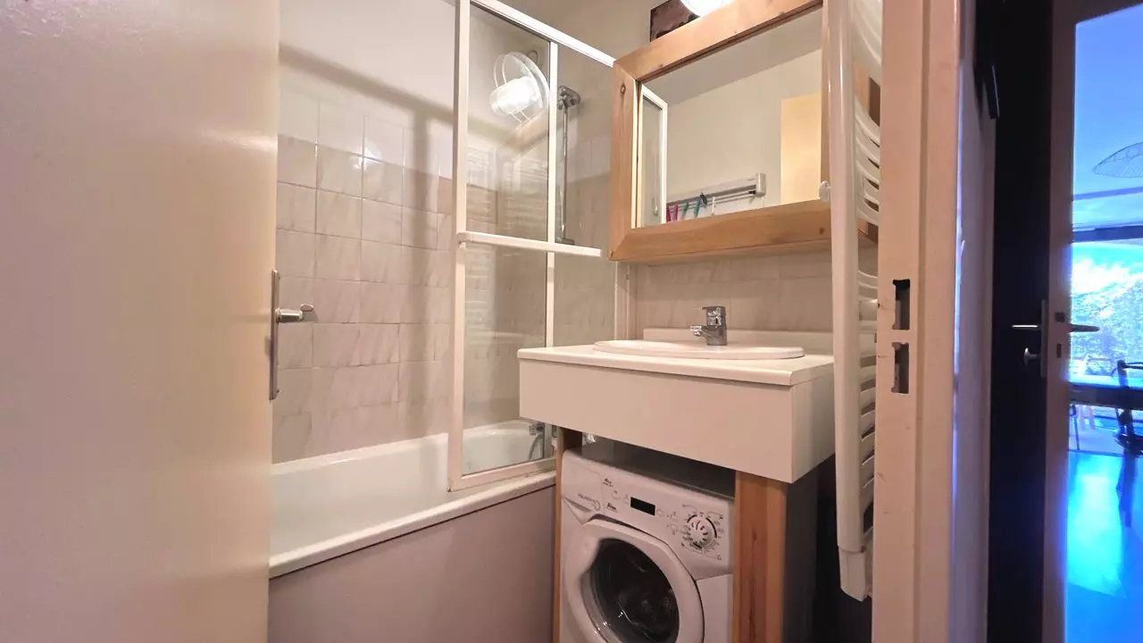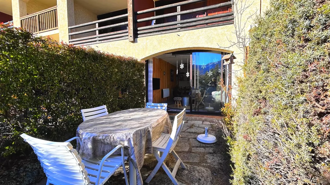 Exposé Sud avec vue sur les Montagnes, ce studio vous offrira de belle journée ensoleillé. Il est composé, d'une entrée avec coin montagne équipé d'un lit superposé (90/200), d'un séjour équipé d'un canapé convertible (140/190), une cuisine équipée (Lave vaisselle, micro-ondes/four, cafetière, réfrigérateur, ...), d'une salle de bain équipé d'un lave linge, un WC indépendant et le plus de ce studio, une terrasse donnant accès à un jardin privatif.