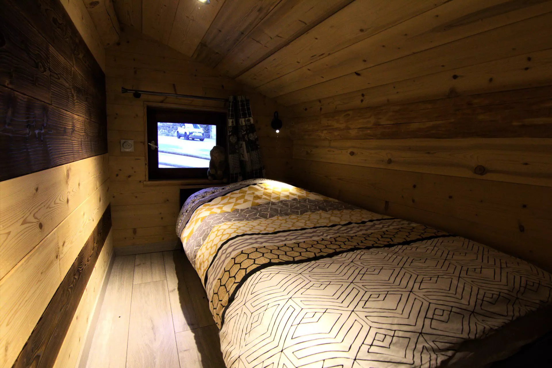 Les couchages se composent d'une chambre double en mezzanine avec lit 160 200 cm, d'une seconde mezzanine avec un lit simple, et d'un canapé clic-clac dans le séjour.