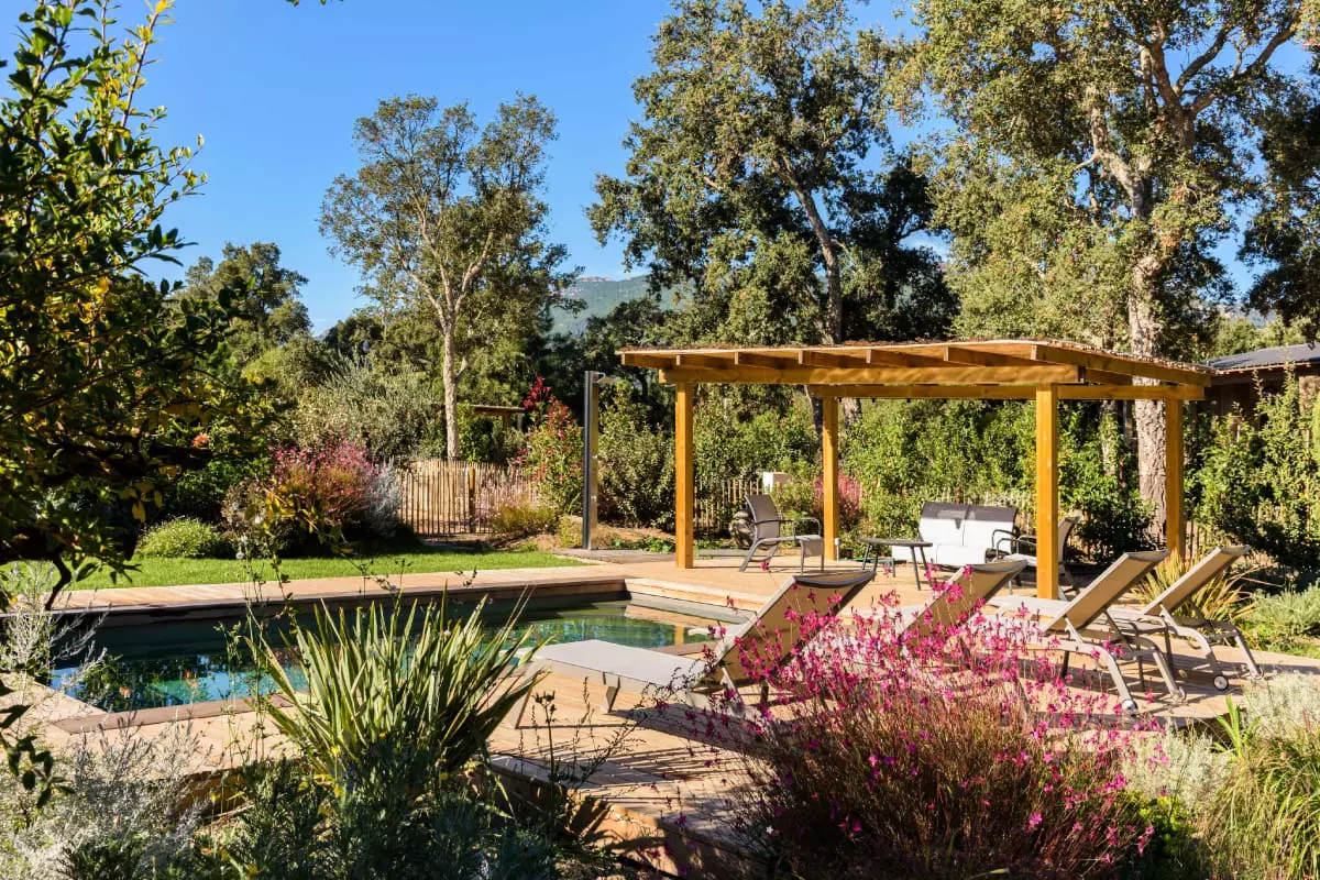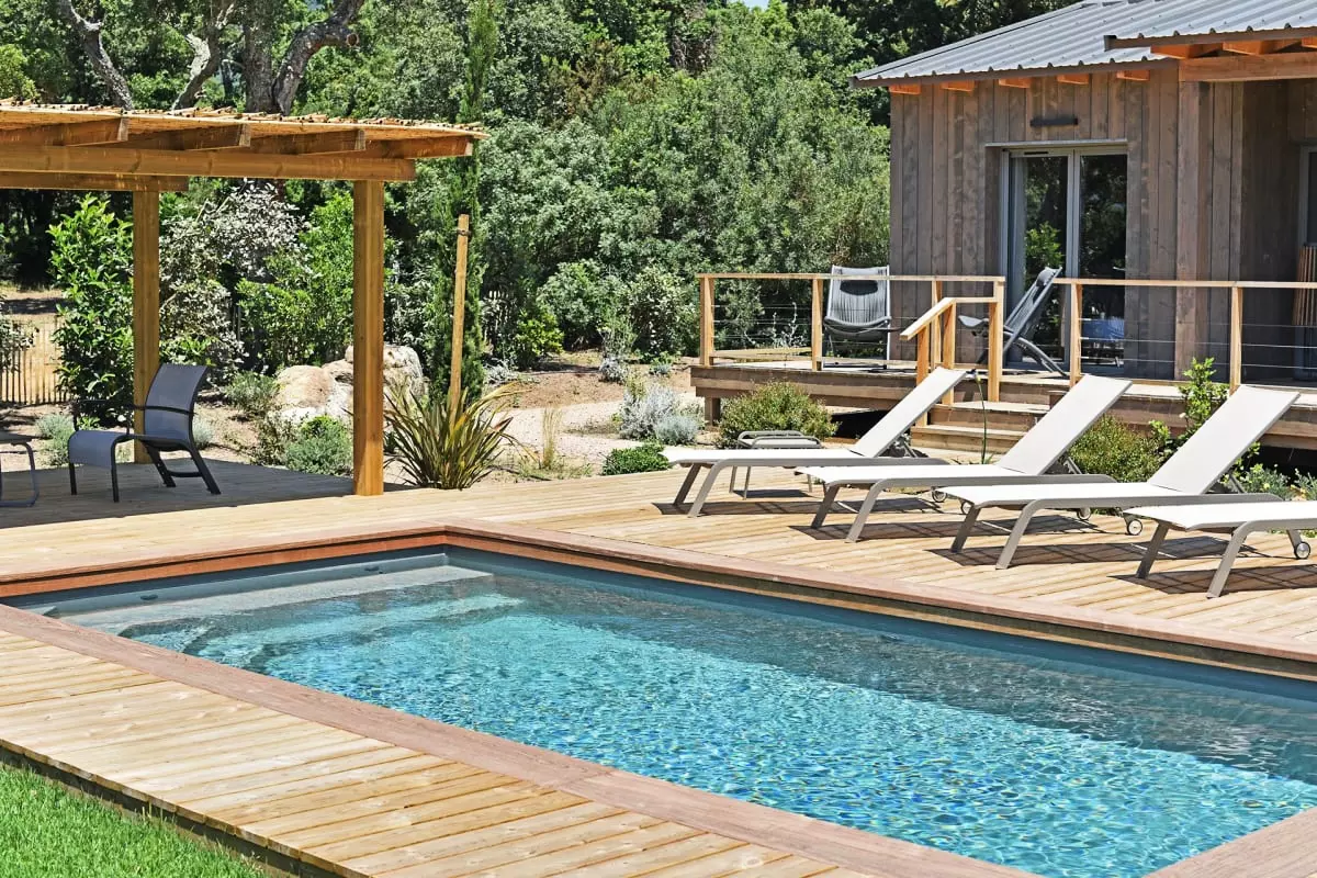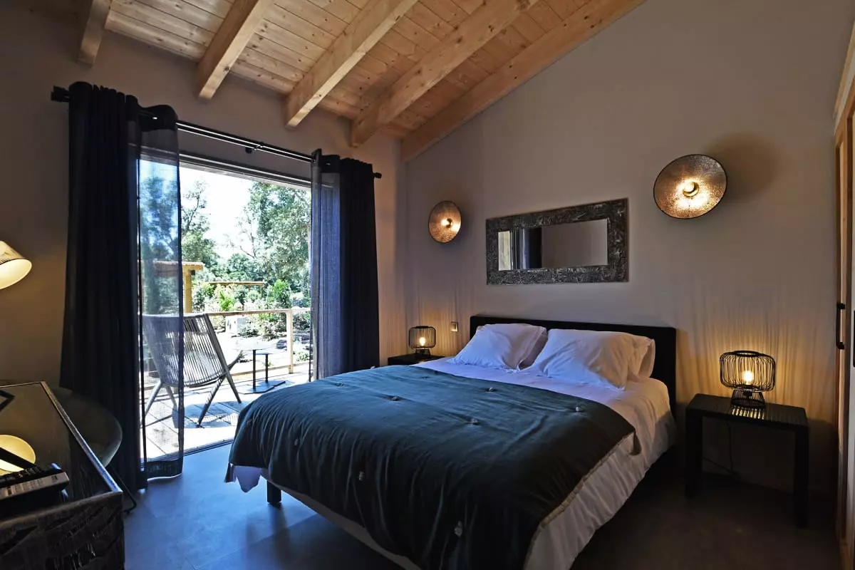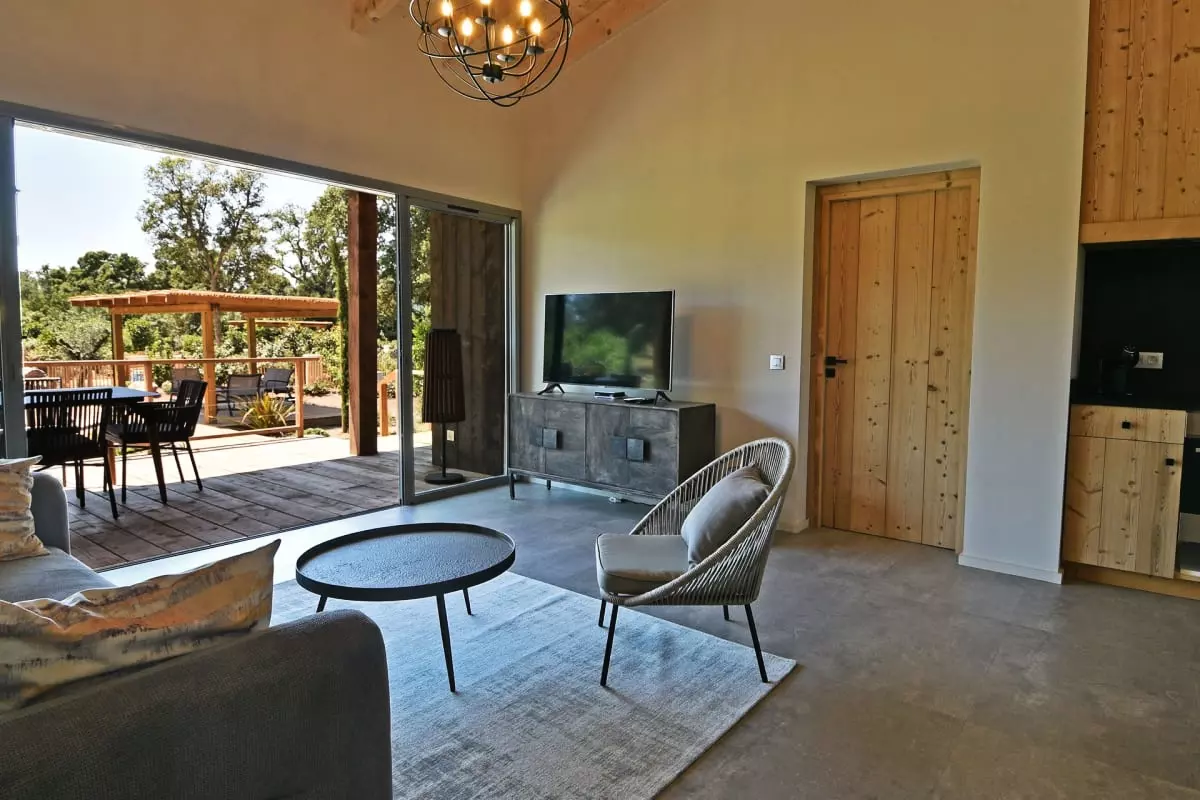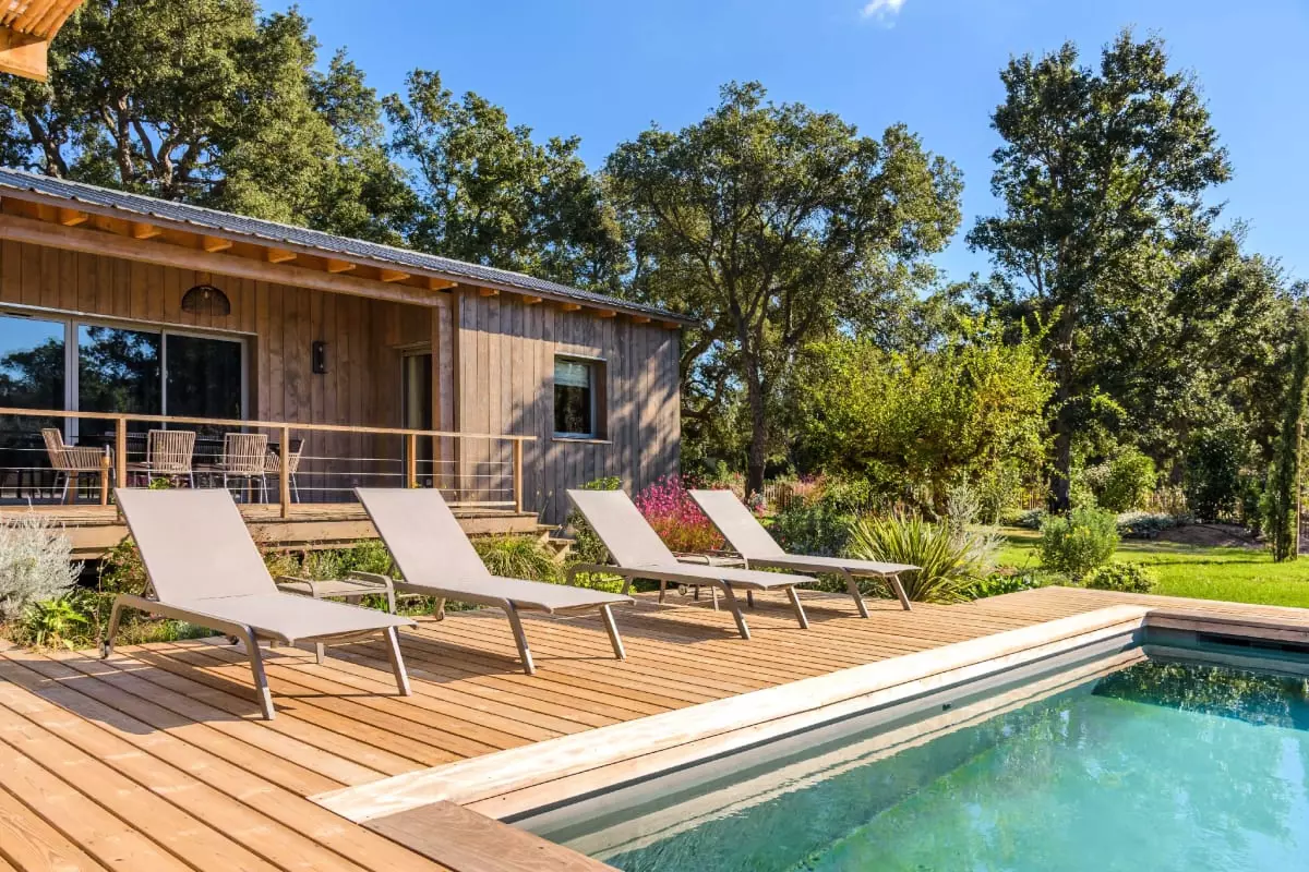 Découvrez l'exclusivité du Lodge "Myrte", une villa de charme en ossature bois se mêlant parfaitement avec la nature environnante et offrant une escapade luxueuse dans un cadre idyllique. Idéalement situé, en plein cœur du village de Lecci en Corse du Sud, ce lodge de 80m² offre un raffinement unique avec des caractéristiques exceptionnelles pour des vacances inoubliables.