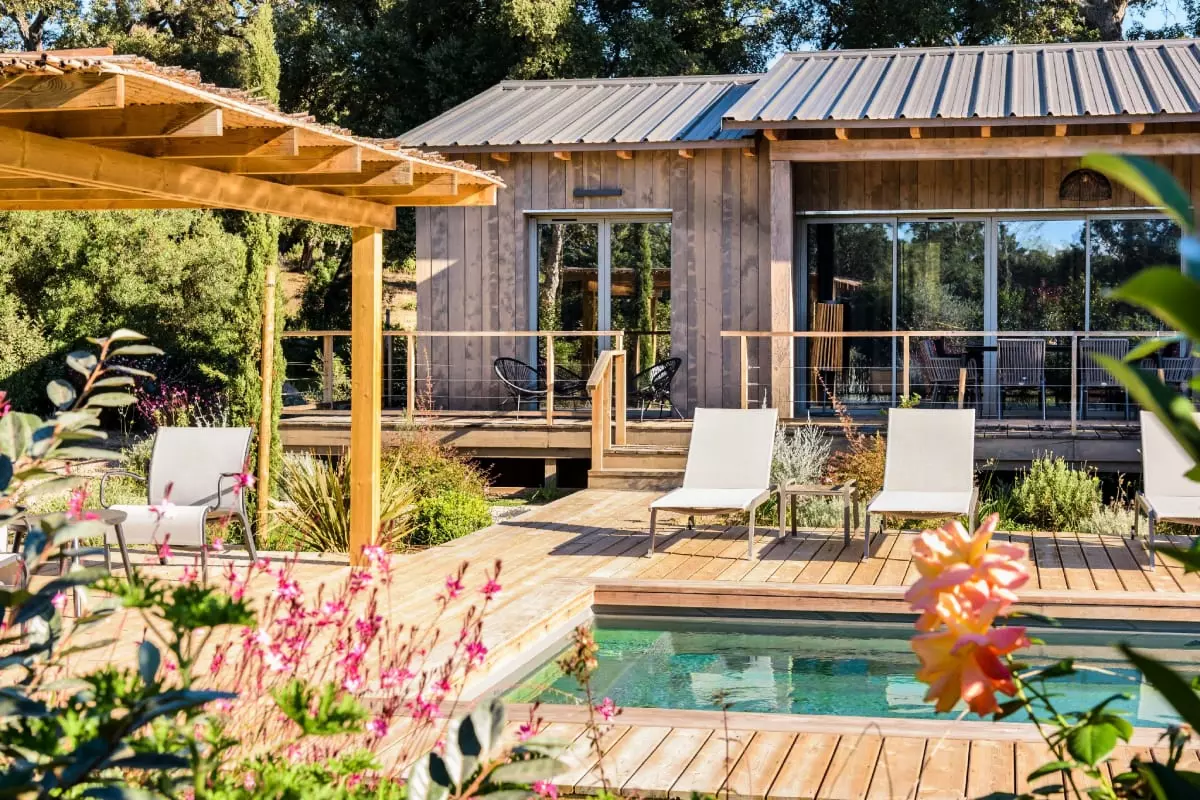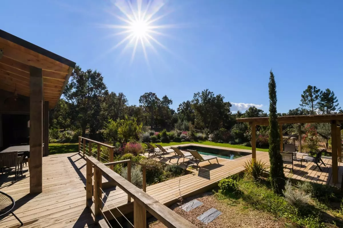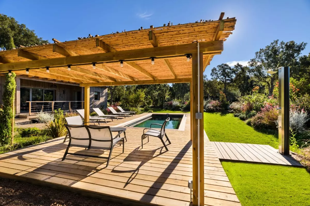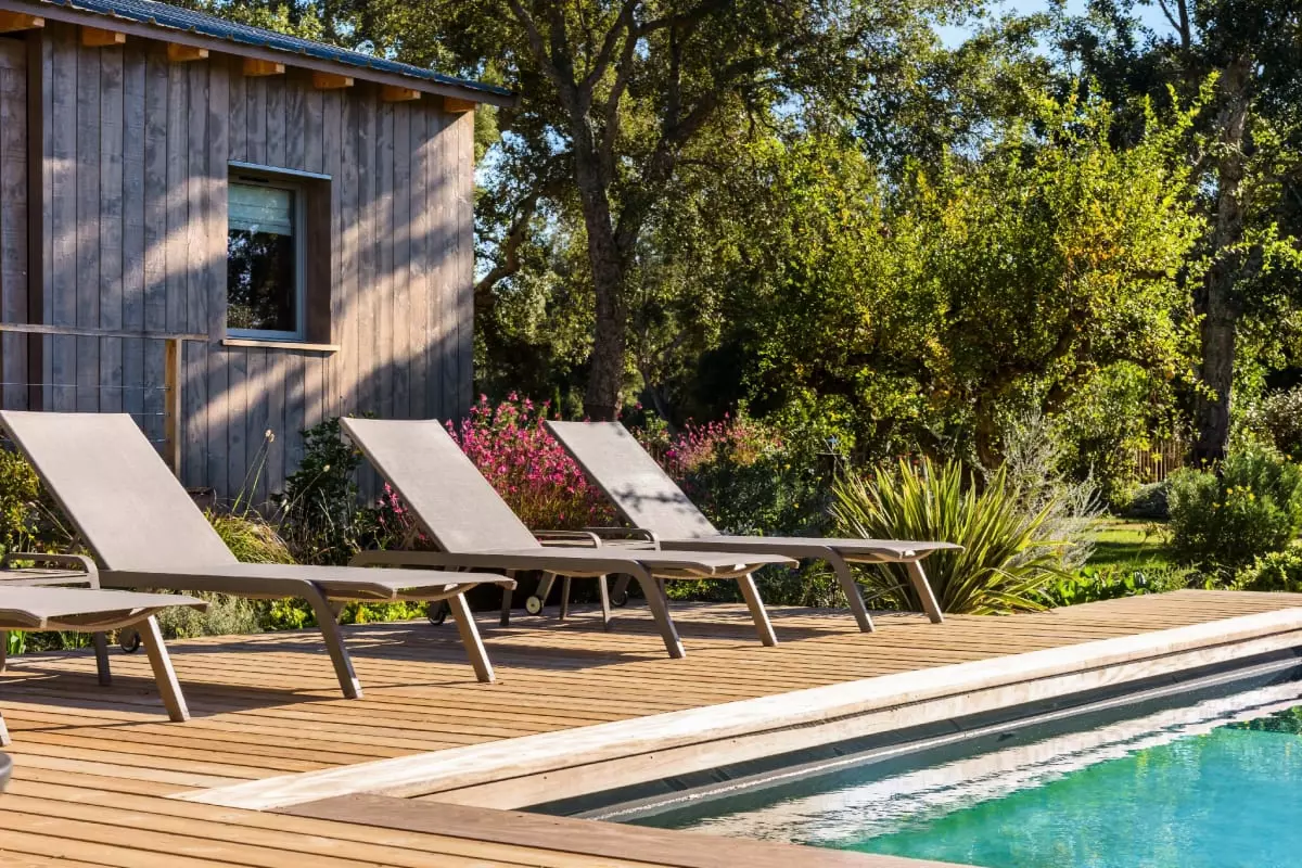 Poolhouse couvert : Pour savourer des moments de détente au bord de la piscine à l’abri du soleil.
