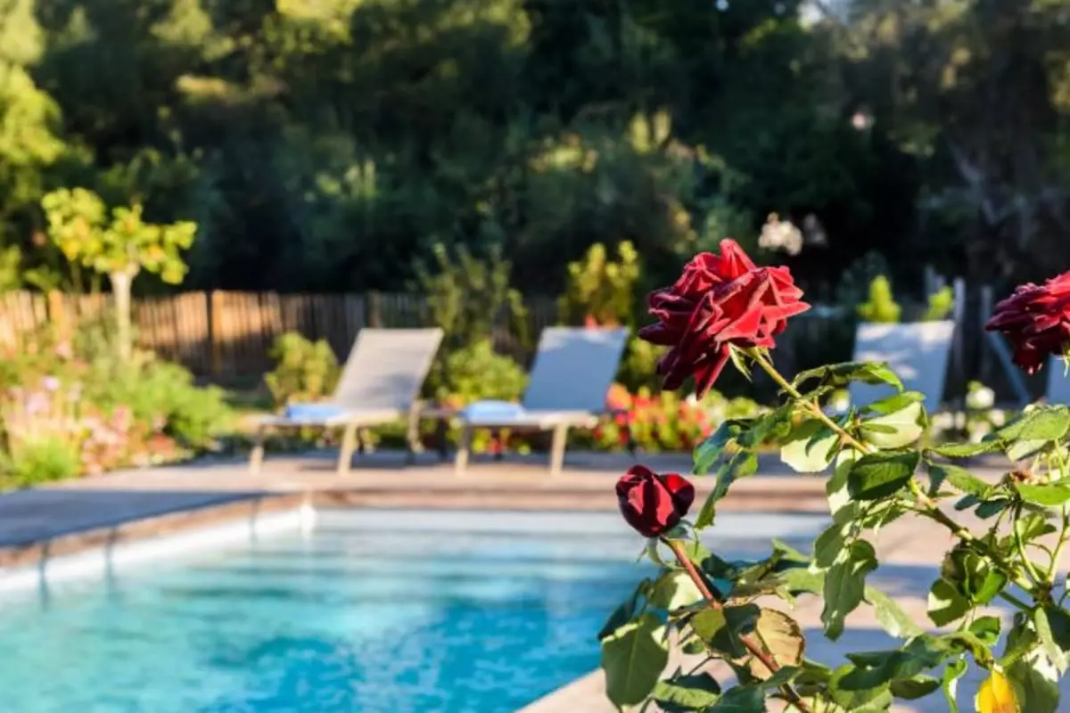 Piscine Chauffée : Plongez dans la piscine chauffée de 9m x 3.60m, entourée de verdure, pour des instants de fraîcheur et de plaisir.