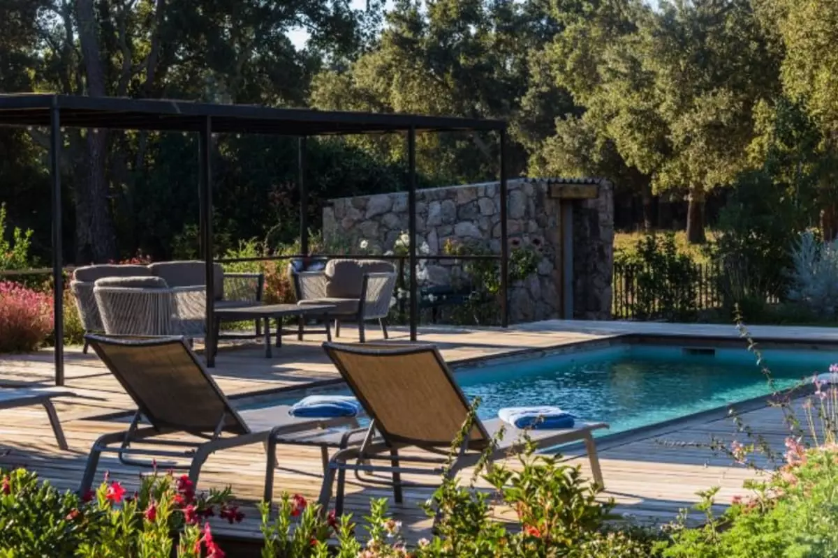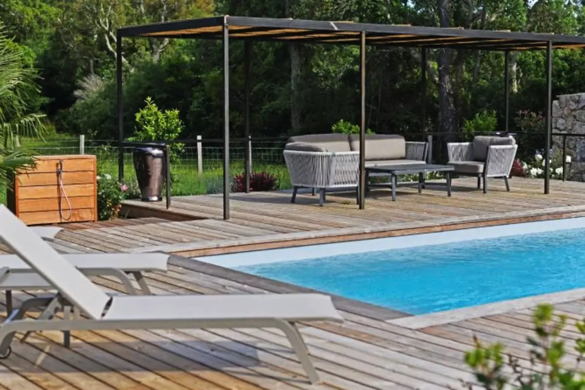 Poolhouse couvert : Pour savourer des moments de détente au bord de la piscine à l’abri du soleil.