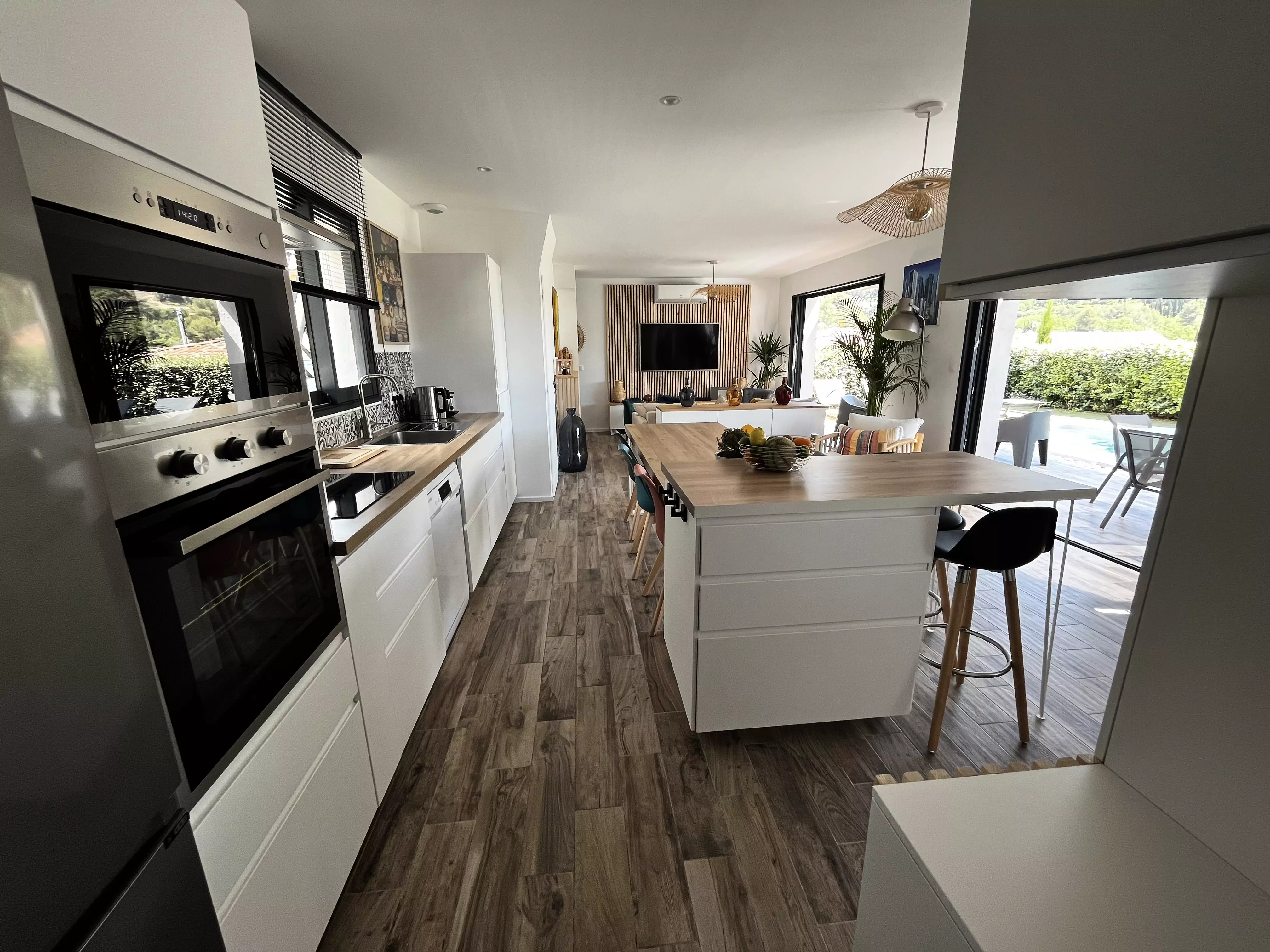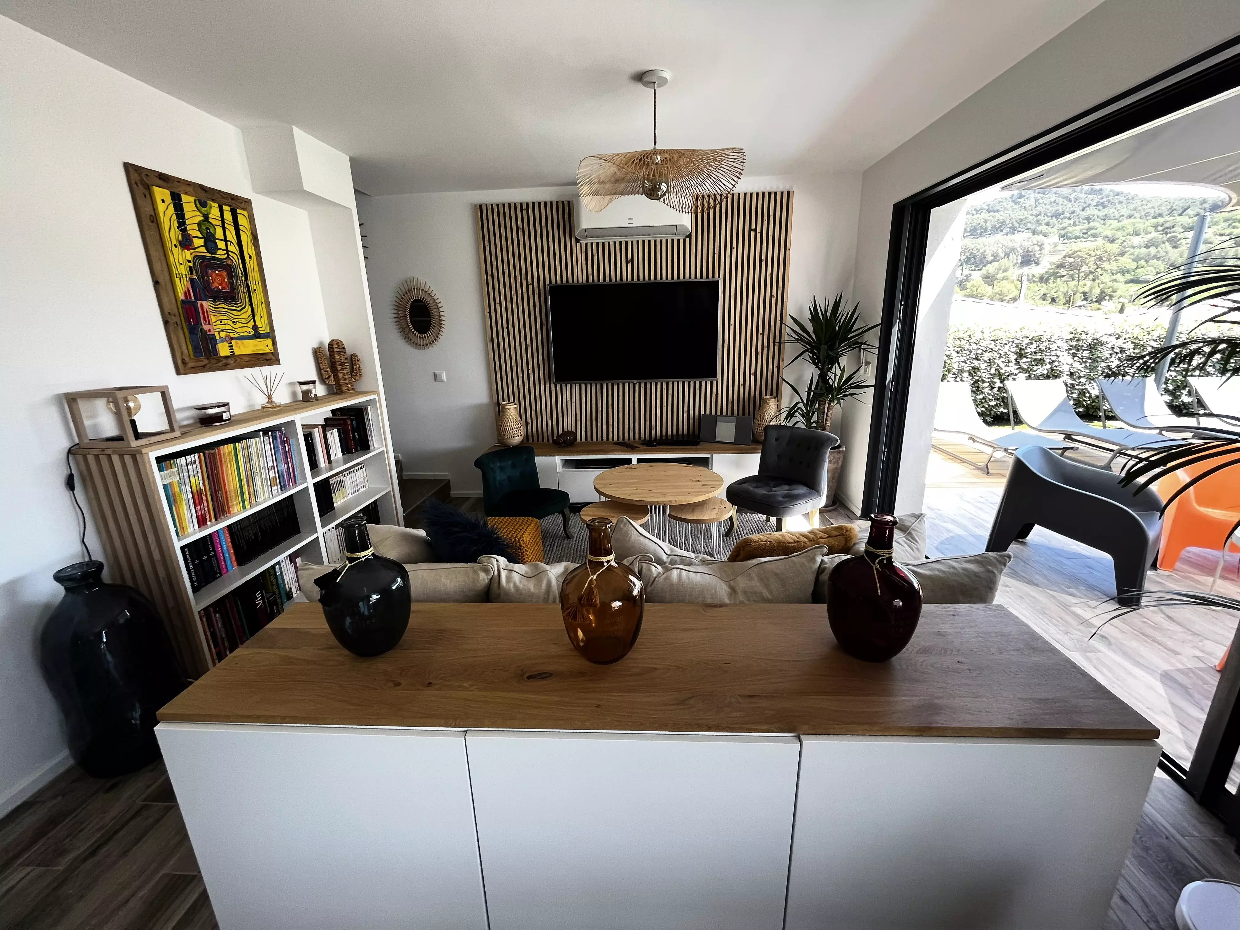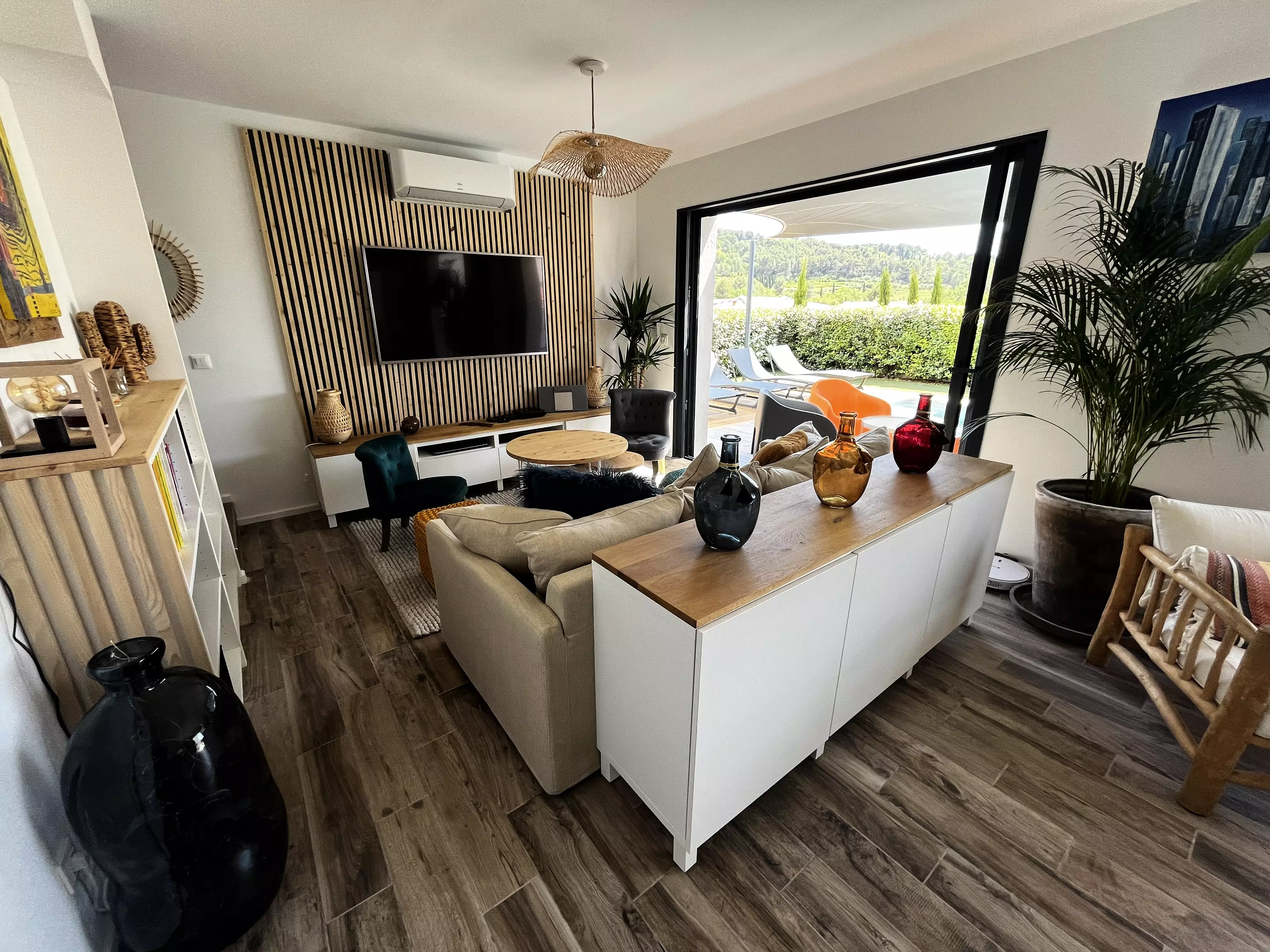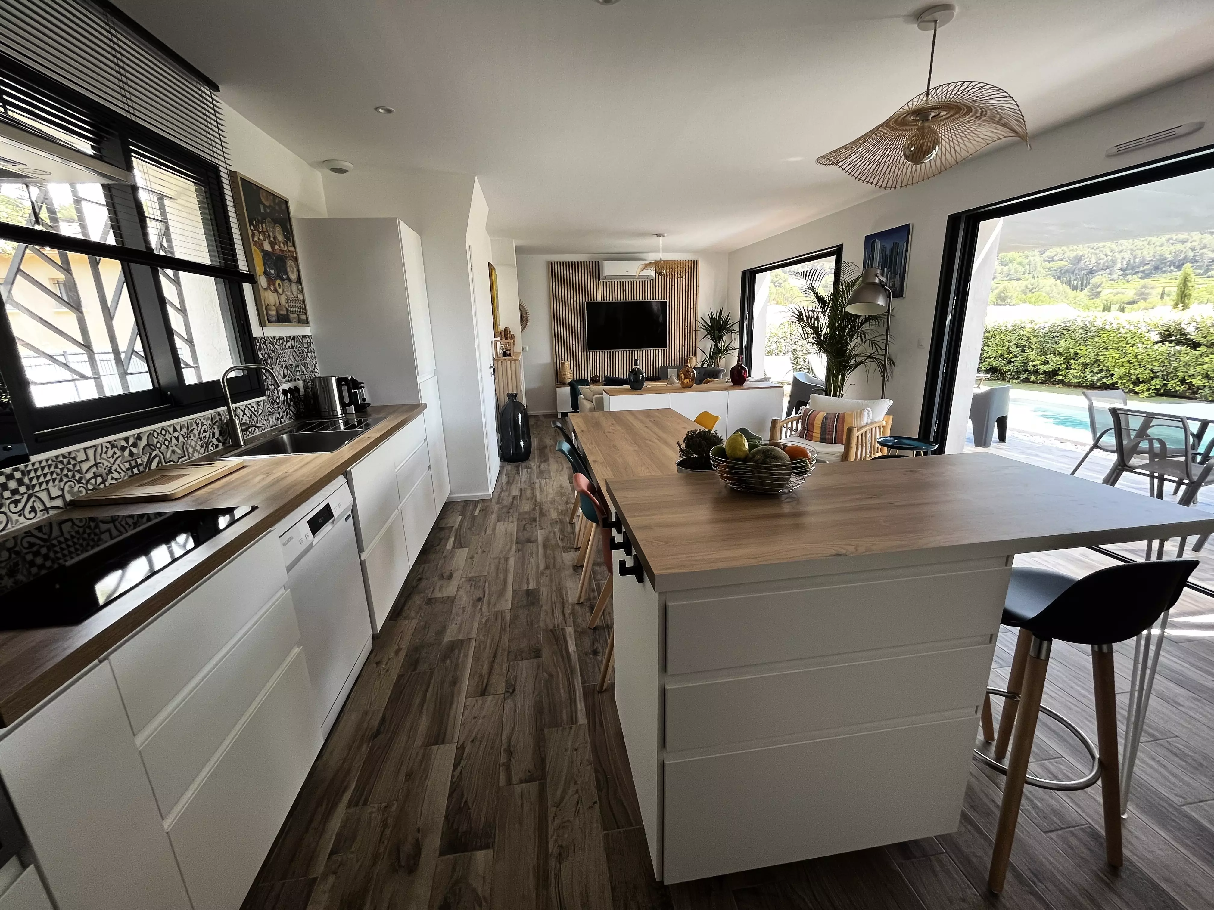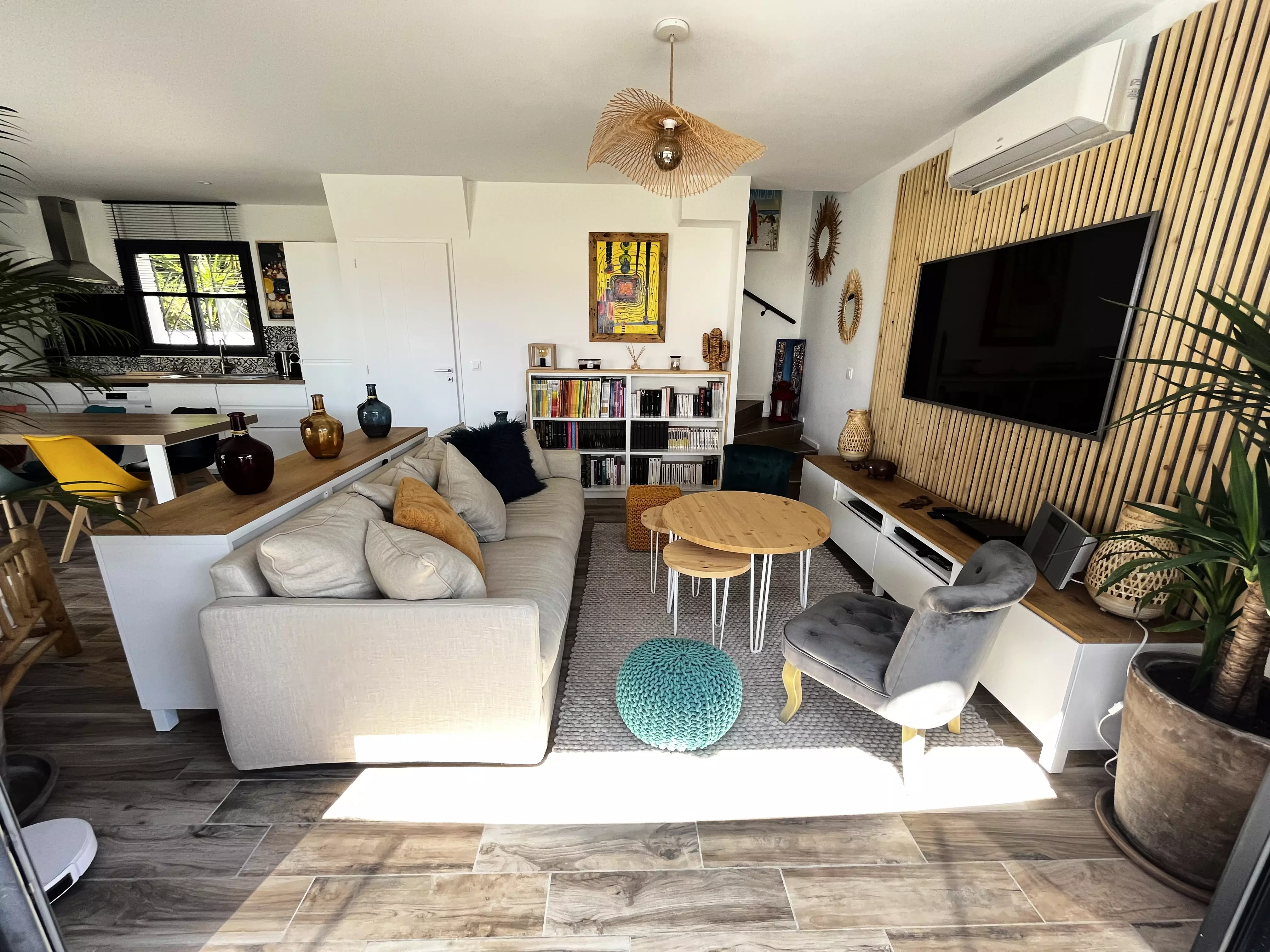 Les atouts de votre location : Cette villa lumineuse séduit par sa décoration chaleureuse et son grand confort. Orientée plein sud, elle bénéficie d'un vaste jardin sans vis-à-vis avec terrasse, mobilier extérieur, chaises longues, barbecue, piscine et terrain de pétanque, idéal pour profiter pleinement des moments en extérieur. À l'intérieur, le séjour climatisé s'ouvre sur une cuisine américaine bien équipée, parfaite pour préparer les repas en toute convivialité. Les trois chambres et les deux salles d'eau offrent un espace pratique, tandis que le parking privé, l'accès internet haut débit et de nombreux rangements facilitent le séjour. Une villa accueillante, pensée pour des vacances confortables et agréables.