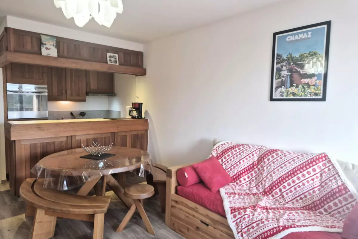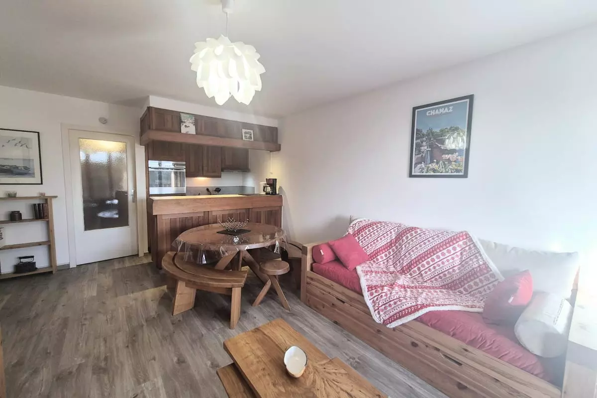 Appartement au pied des pistes, avec terrasse plein sud, cuisine équipée, coin nuit, et accès skis aux pieds. Idéal pour un séjour en famille entre ski, randonnées et nature. À 1500 m d’altitude, profitez d’une vue imprenable et de nombreuses activités été comme hiver !