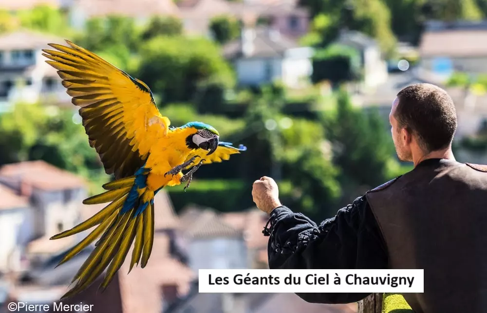 Chauvigny cité médiévale (5 châteaux), vélo rail, durant l'été spectacle Les Géants du Ciel