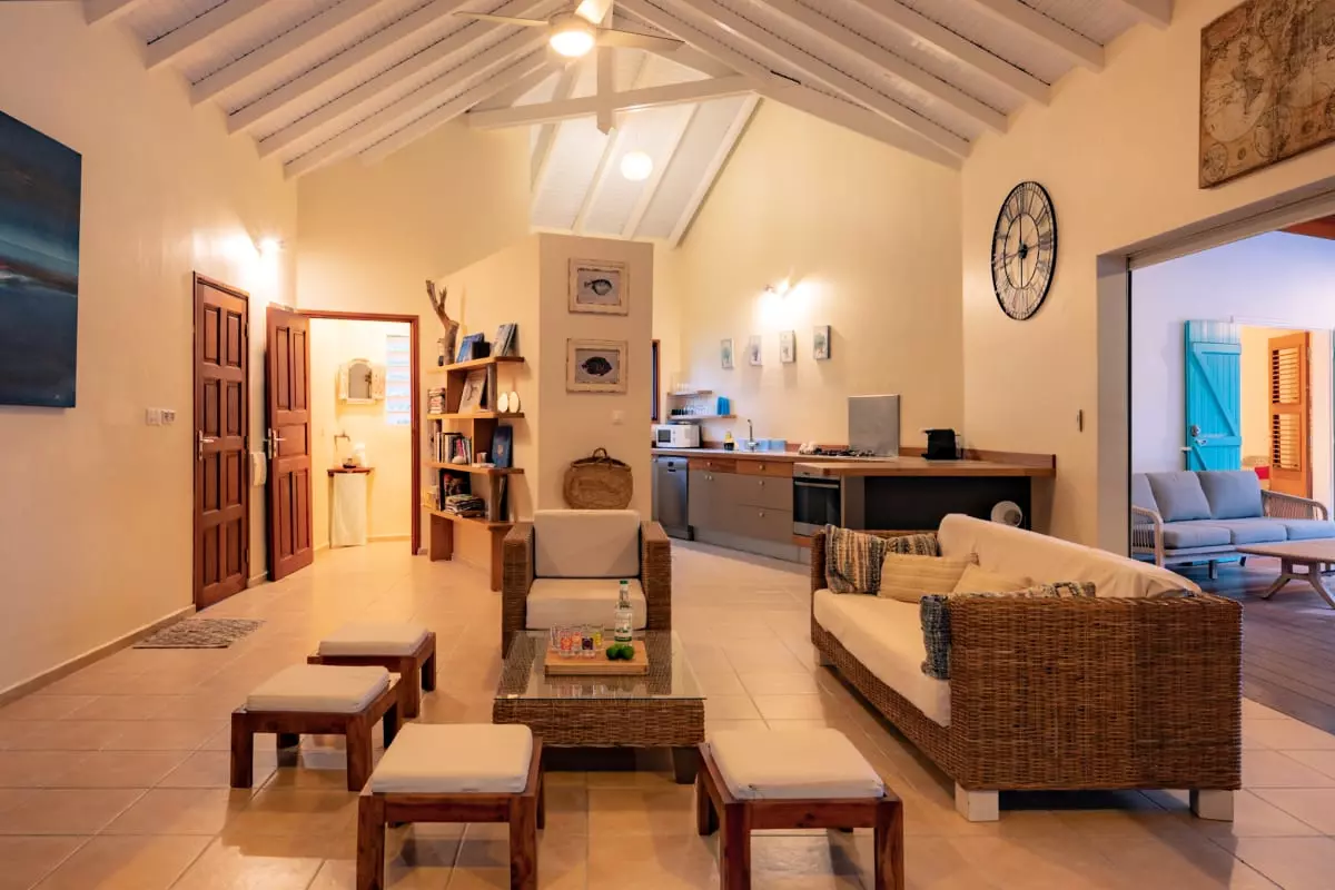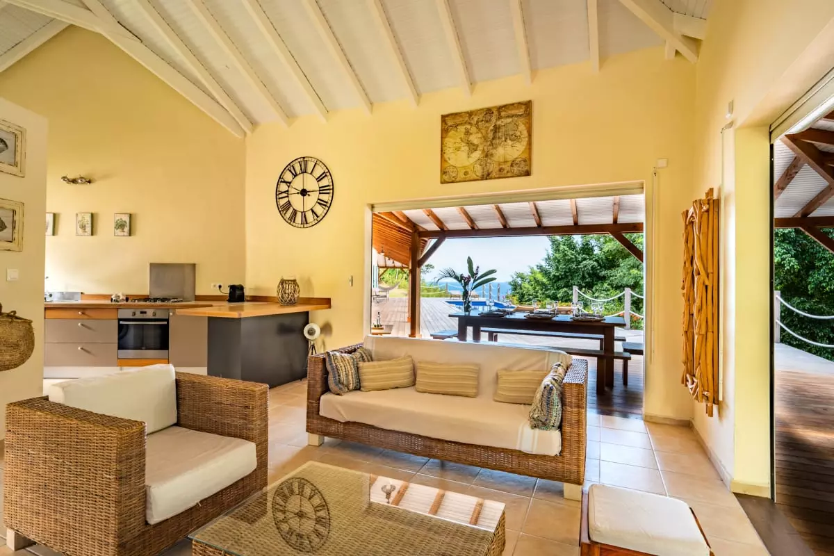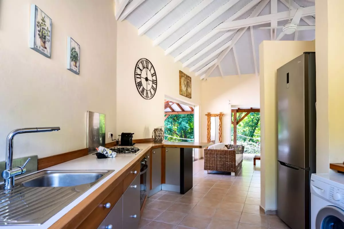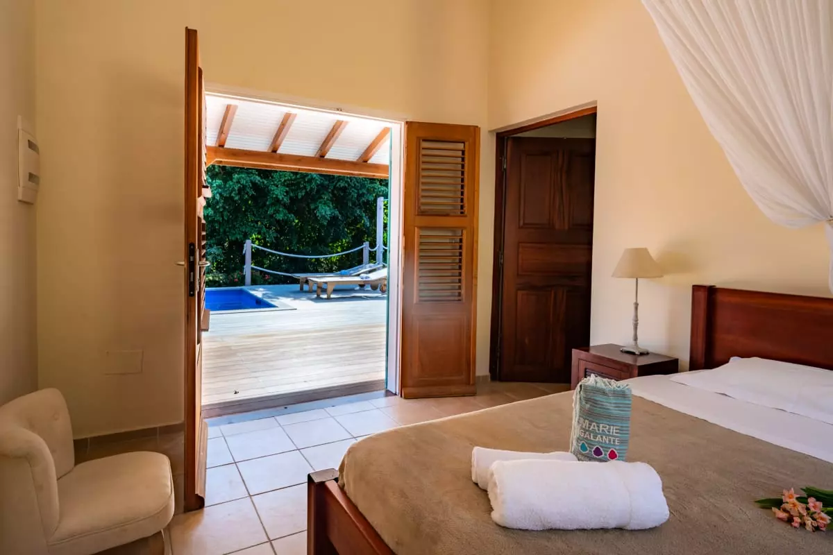 La villa se trouve à Capesterre de Marie-Galante, un des joyaux de Marie-Galante, réputé pour ses plages de sable blanc et son authenticité. À environ 5 minutes du bourg, vous trouverez toutes les commodités : supermarchés, boulangeries, marchés locaux et restaurants créoles. Les plages de la Feuillère et de l'Anse Canot sont des incontournables, idéales pour la baignade ou le farniente. Les amateurs de nature apprécieront les sentiers de randonnée et les champs de canne à sucre qui font le charme unique de l'île.