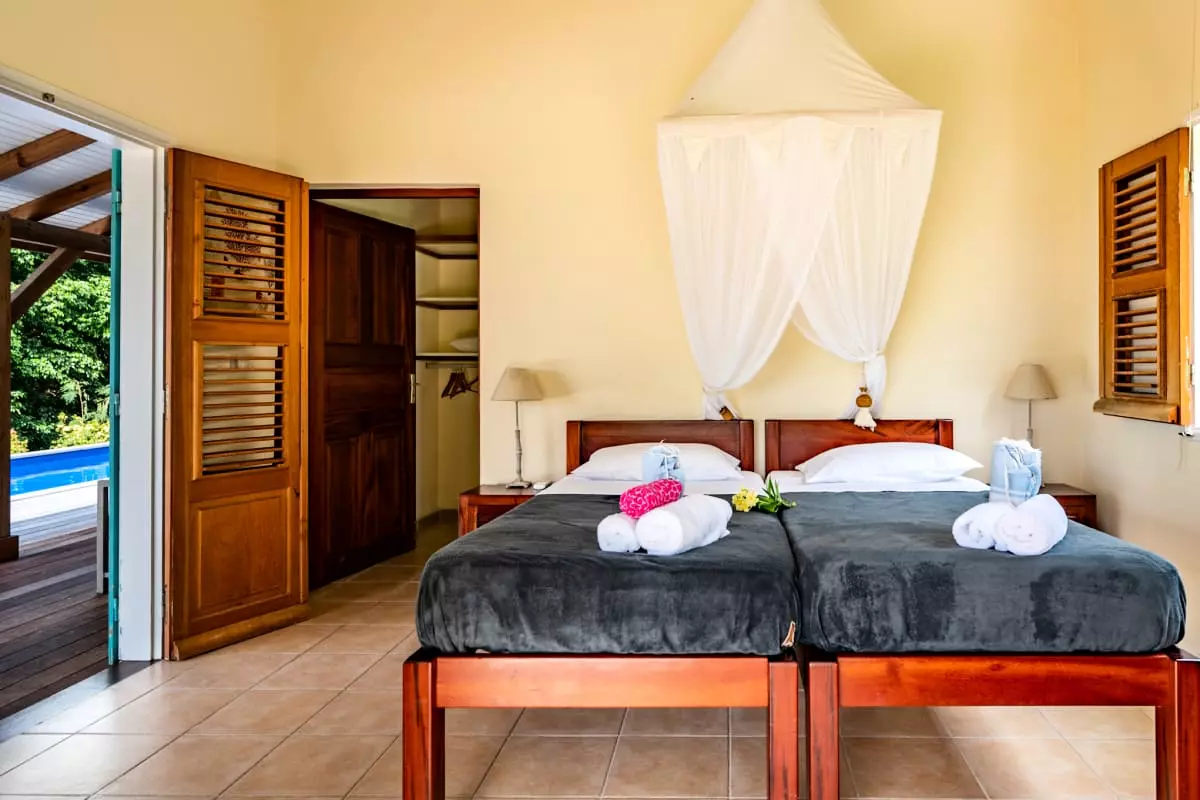 Située à 300 de la plage de Petite Anse, la villa Coccoloba peut accueillir 8 personnes réparties dans 4 chambres avec chacune sa salle de bain attenante, dont une chambre répondant aux normes d’accès handicapés. Les couchages sont de 3 lits doubles, et 2 lits simples qui peuvent être assemblées en lit double.