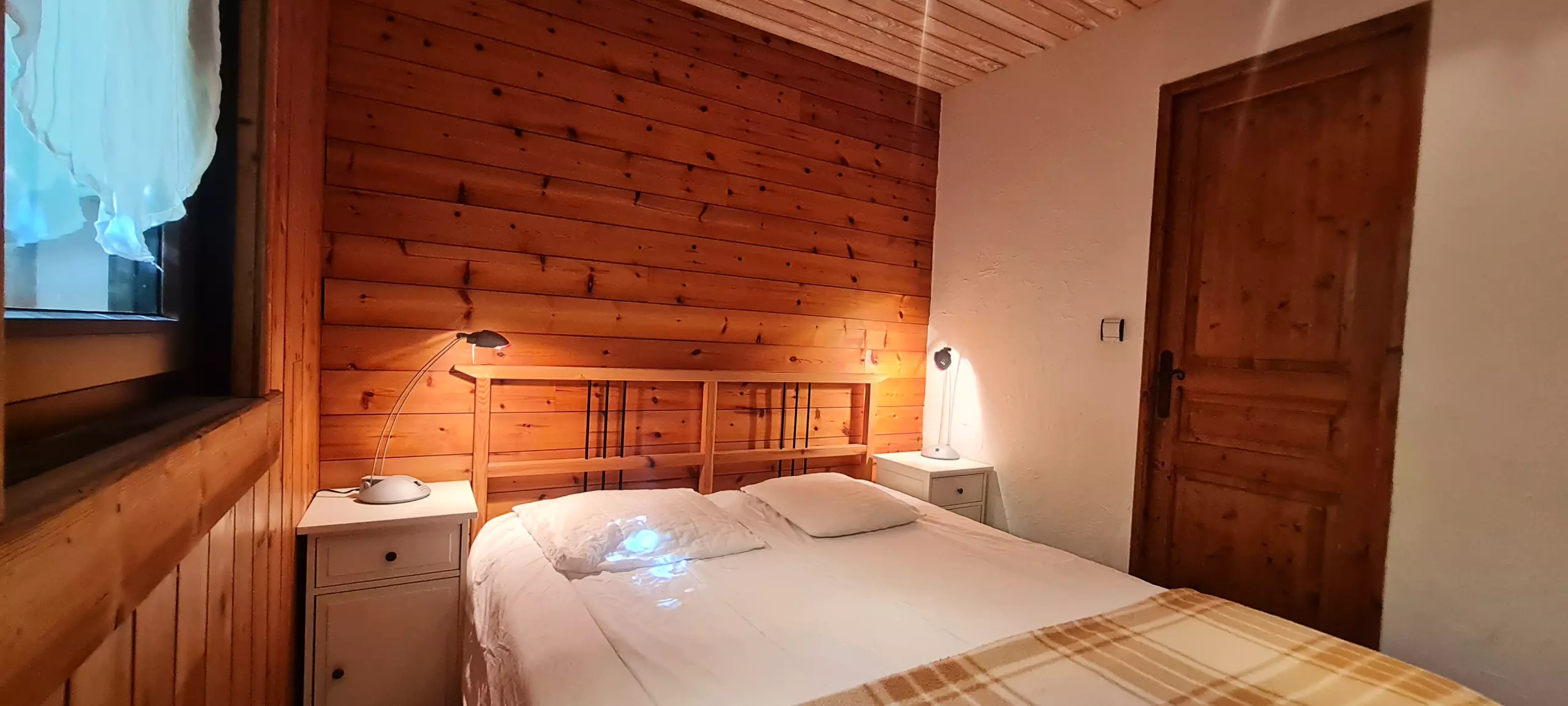 Chambre 1 : Un lit double (160x200) pour des nuits reposantes après une journée sur les pistes.