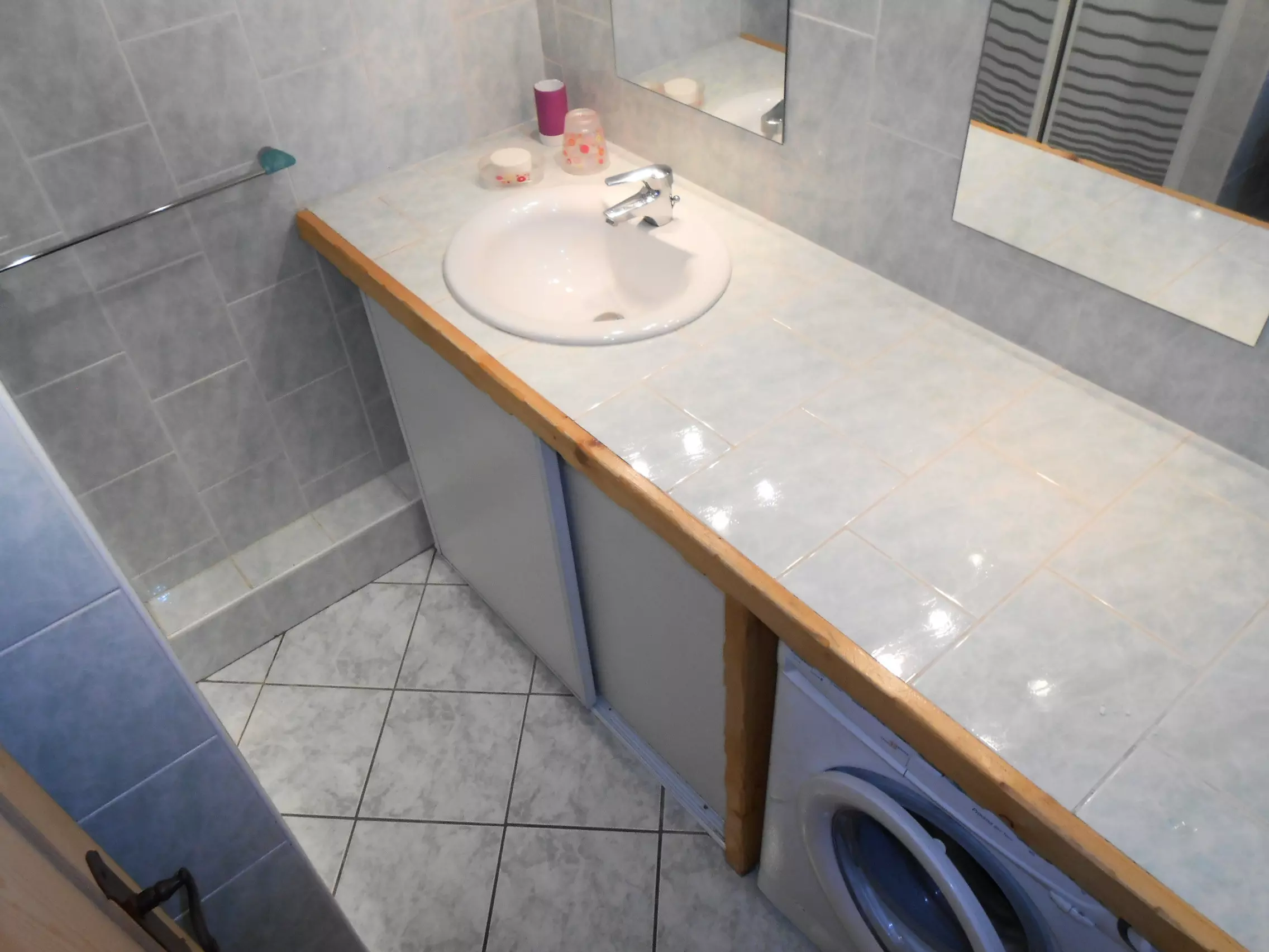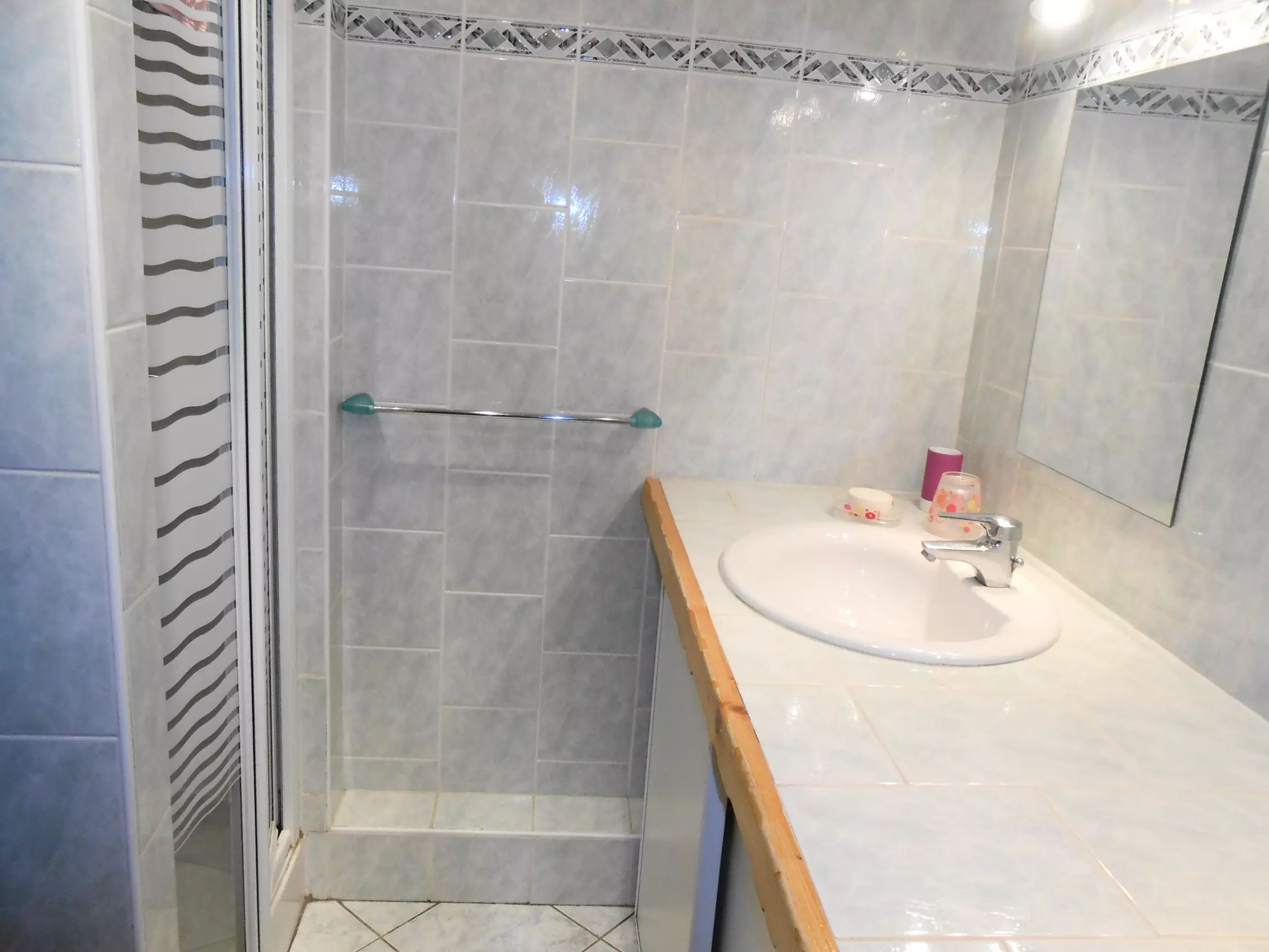 Salle de bain : Douche, porte-serviette, sèche-cheveux et WC indépendants pour plus de confort.