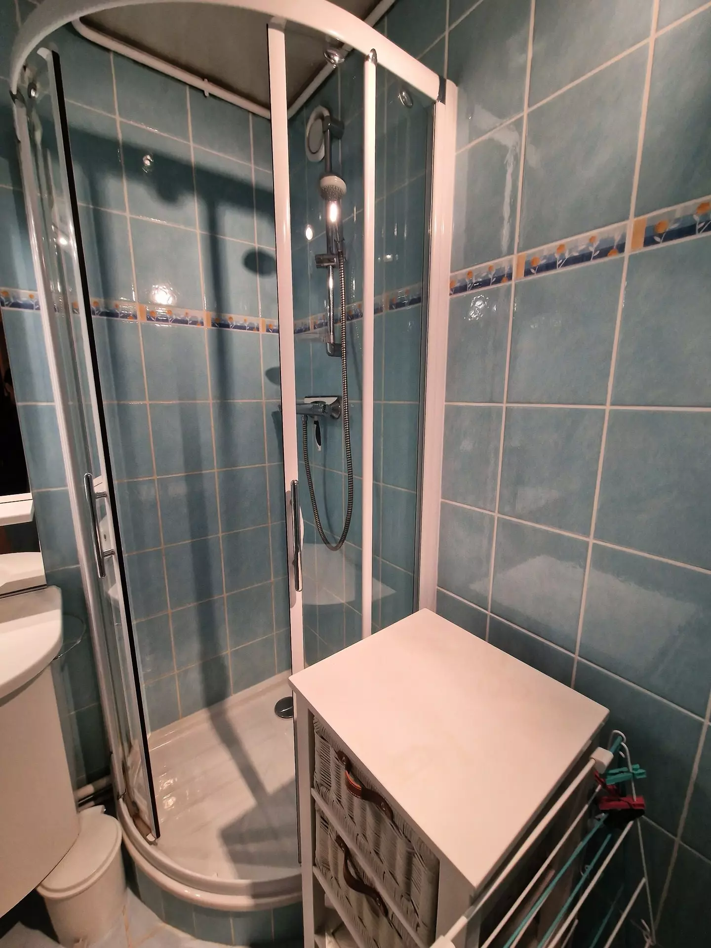 Equipements: plaques vitrocéramiques, micro-onde, réfrigérateur, lave-vaisselle, mini-four, cafetière, bouilloire, grille-pain.