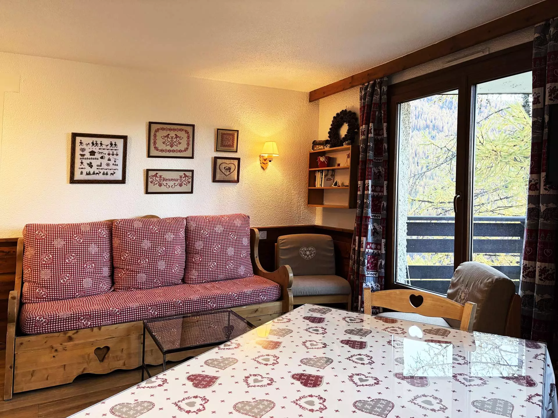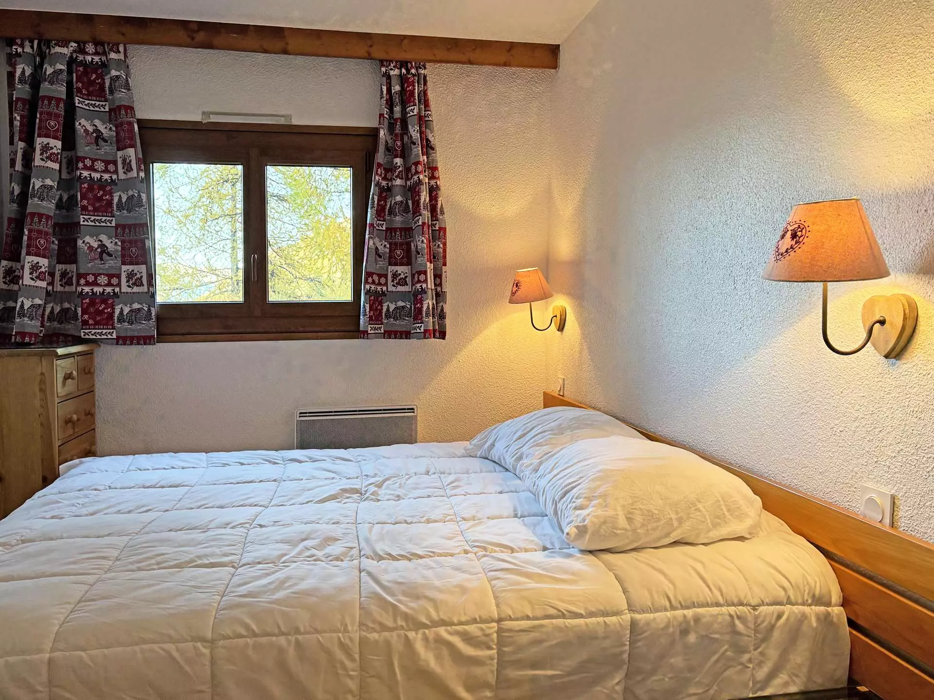 Dans une résidence de prestige avec salon cheminée, coin wifi, coin télévision, Joli et confortable appartement 2 pièces équipé pour 6 personnes en coeur de station avec accès direct aux pistes, composé d'un séjour avec un clic-clac 2 personnes + 1 BZ 2 personnes, d'un lit en 160*200 dans la chambre, d'un coin cuisine et d'une salle de bains équipée d'un lave-linge et wc séparés. Balcon exposition sud au 1er étage.