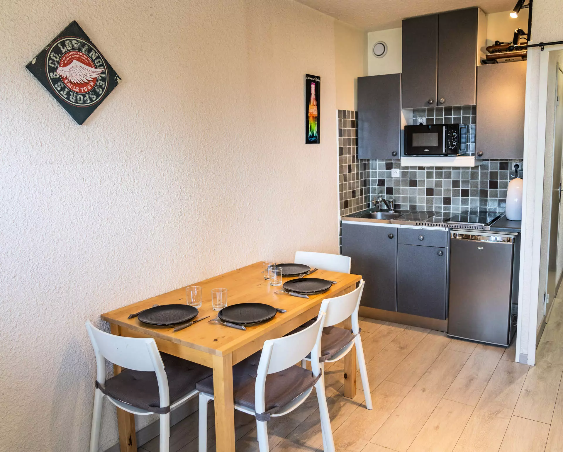 L'Agence des Orres vous propose ce charmant petit studio de 19m² aménagé pour 2 personnes, qui saura vous séduire avec son exposition plein sud et sa vue plongeante sur les pistes et le centre station du haut du 5ème étage.