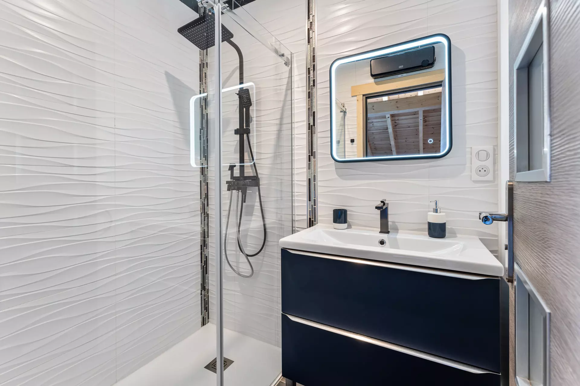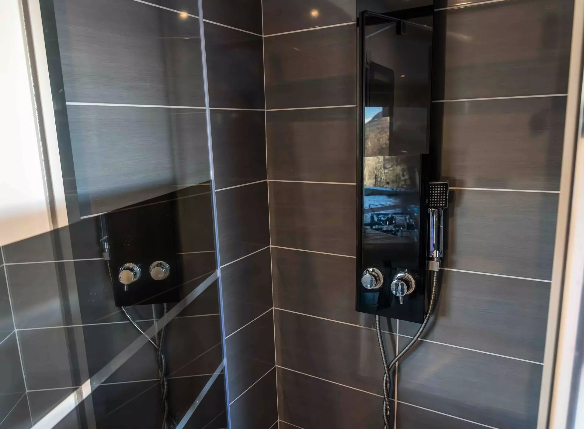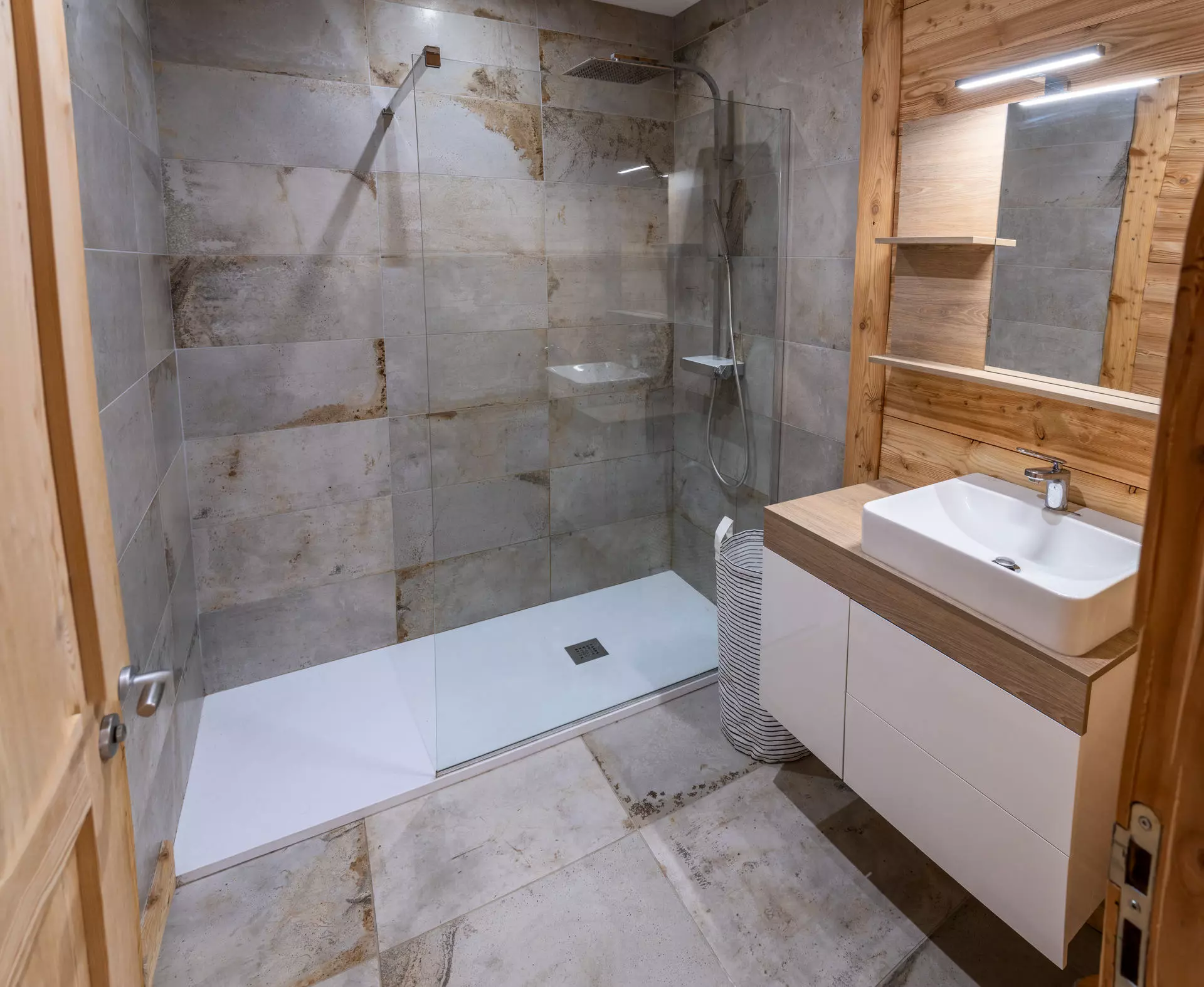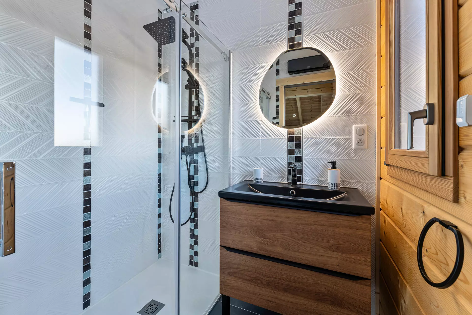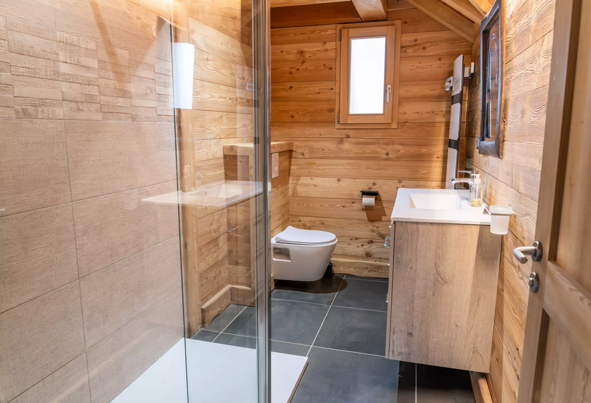 Le chalet compte également trois salles d'eau avec douches et trois WC.