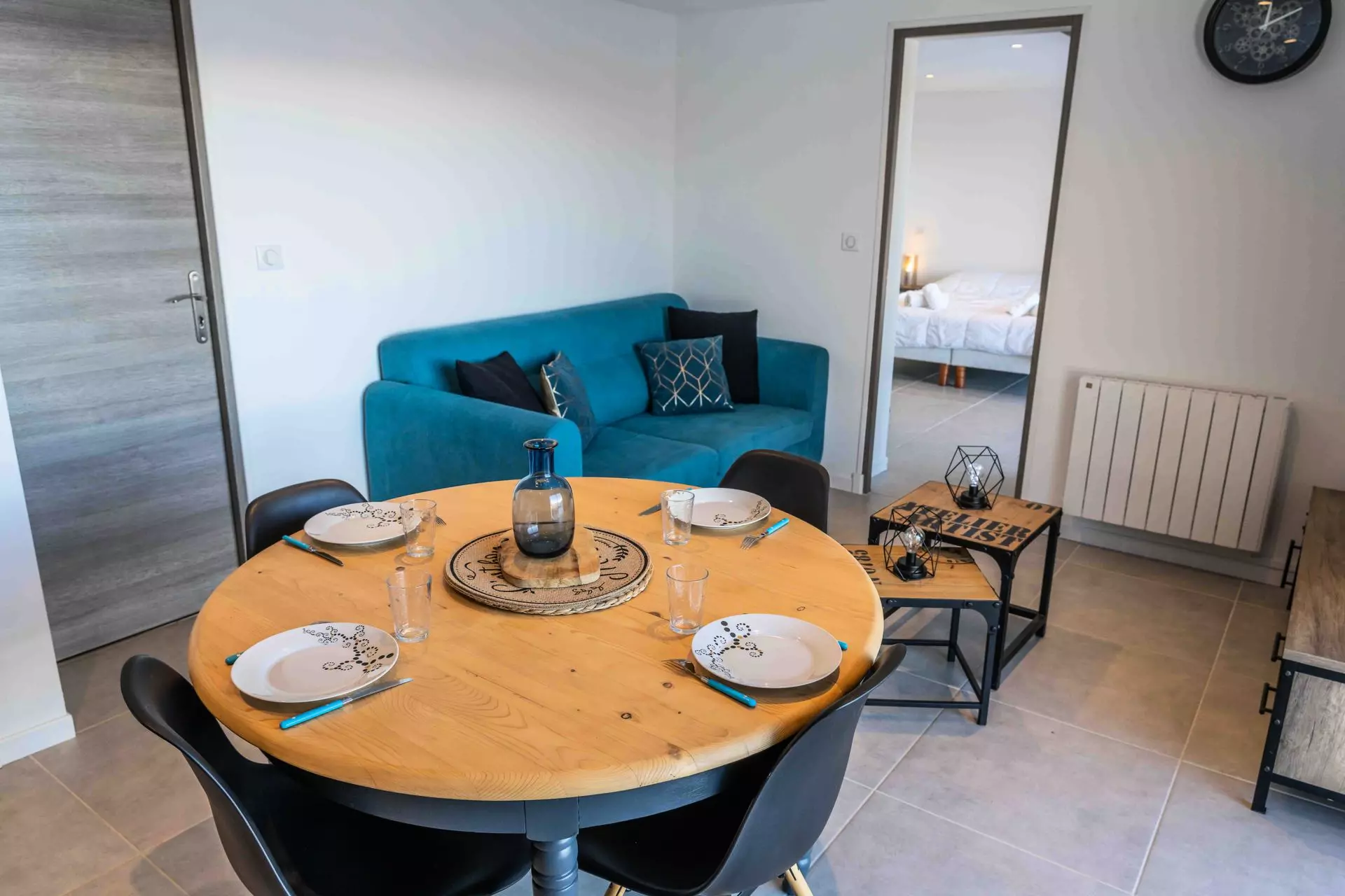 Ce logement, au caractère authentique et à la décoration soignée, se compose d'une spacieuse pièce de vie, ouverte sur une terrasse exposée plein sud. Vous apprécierez son salon connecté (télévision, connexion WIFI en fibre et enceinte Bluetooth) et sa cuisine ouverte entièrement équipée (lave-vaisselle, four, bouilloire, micro-ondes, cafetière Nespresso, lave-linge, appareil à fondue...).