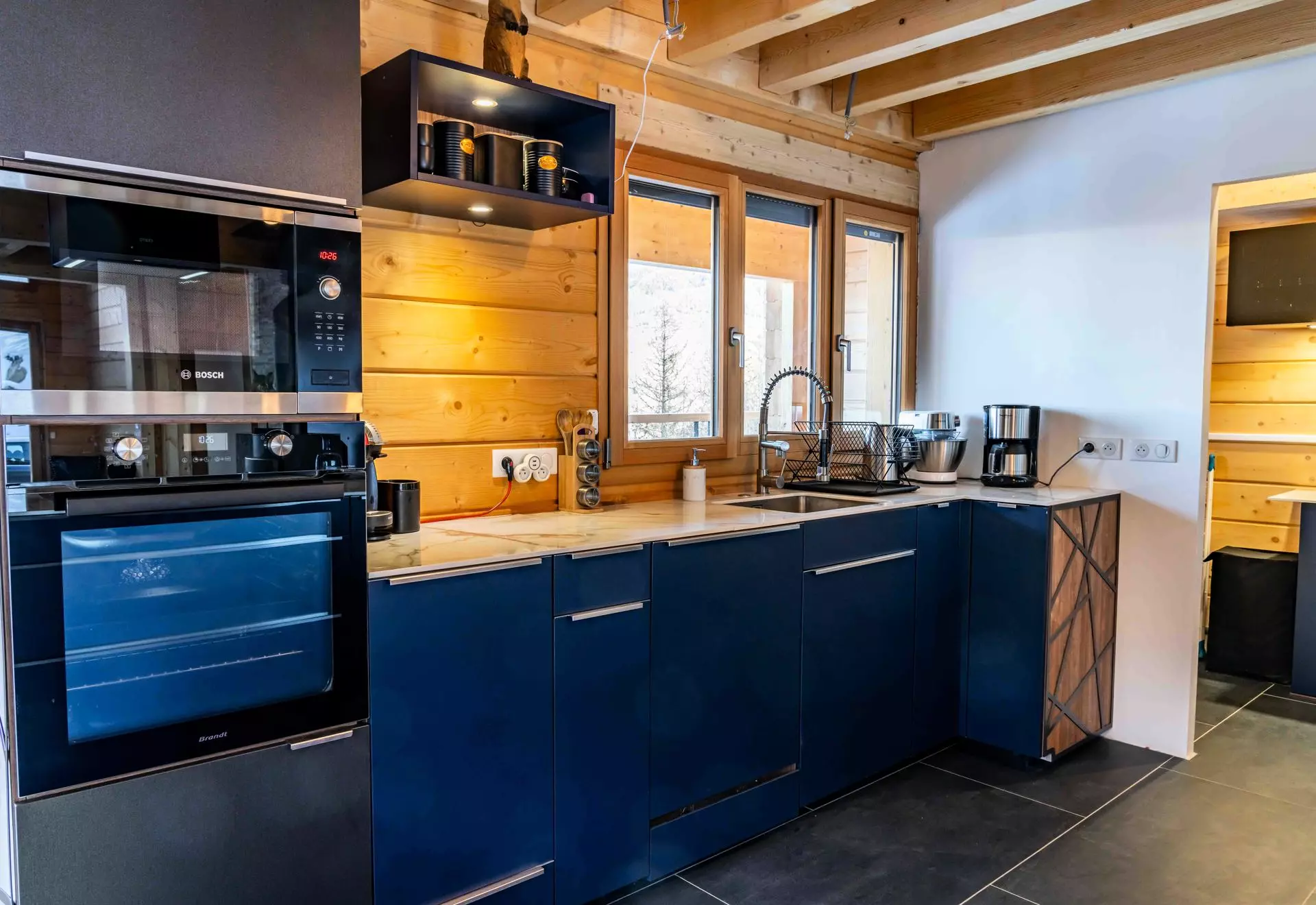 Dès votre arrivée, vous serez séduits par la pièce centrale, cœur de vie du chalet, avec ses volumes généreux qui se compose d'un espace salon entièrement connecté (télévision, connexion WIFI en fibre, enceinte Bluetooth)et d'une cuisine ouverte et surélevée, parfaitement équipée (lave-vaisselle, cave à vin, four, lave-linge, cafetière mixte, micro-ondes, bouilloire, grille-pain). La salle à manger est conçue pour partager, avec ceux que vous aimez, des moments inoubliables et peut accueillir 15 convives à table. Les grandes ouvertures vers l'extérieur laissent entrer le soleil des Alpes du Sud et la lumière naturelle vient sublimer le décor intérieur.Une fois la nuit tombée, la charpente intérieure s'illumine grâce aux nombreuses LED pour créer une ambiance tamisée et réconfortante.