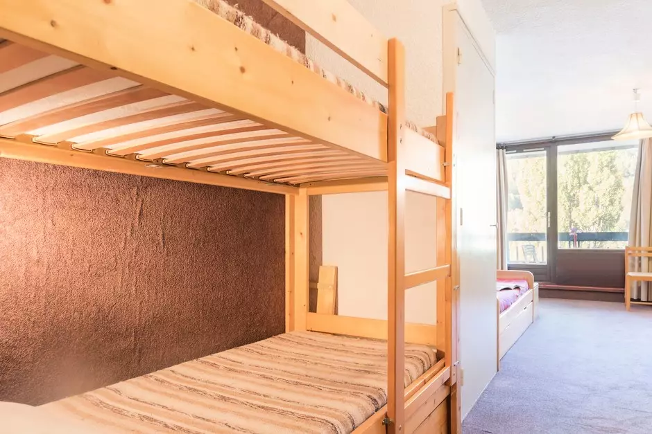 Ce studio dispose d'un coin montagne avec deux lits superposés dans l'entrée