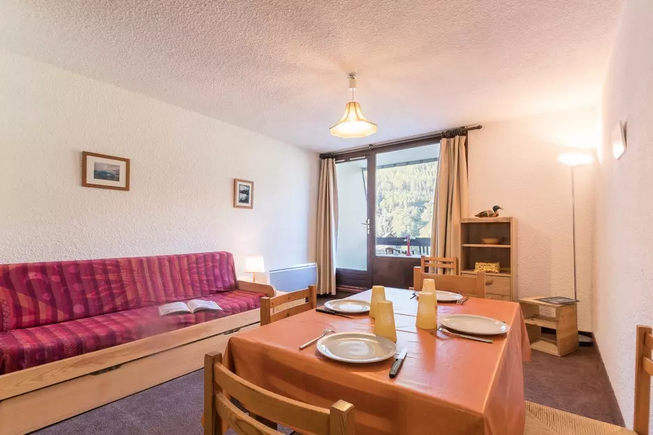 -Un Séjour équipé d'un canapé clic-clac, avec balcon sud, une télévision et un lecteur DVD.