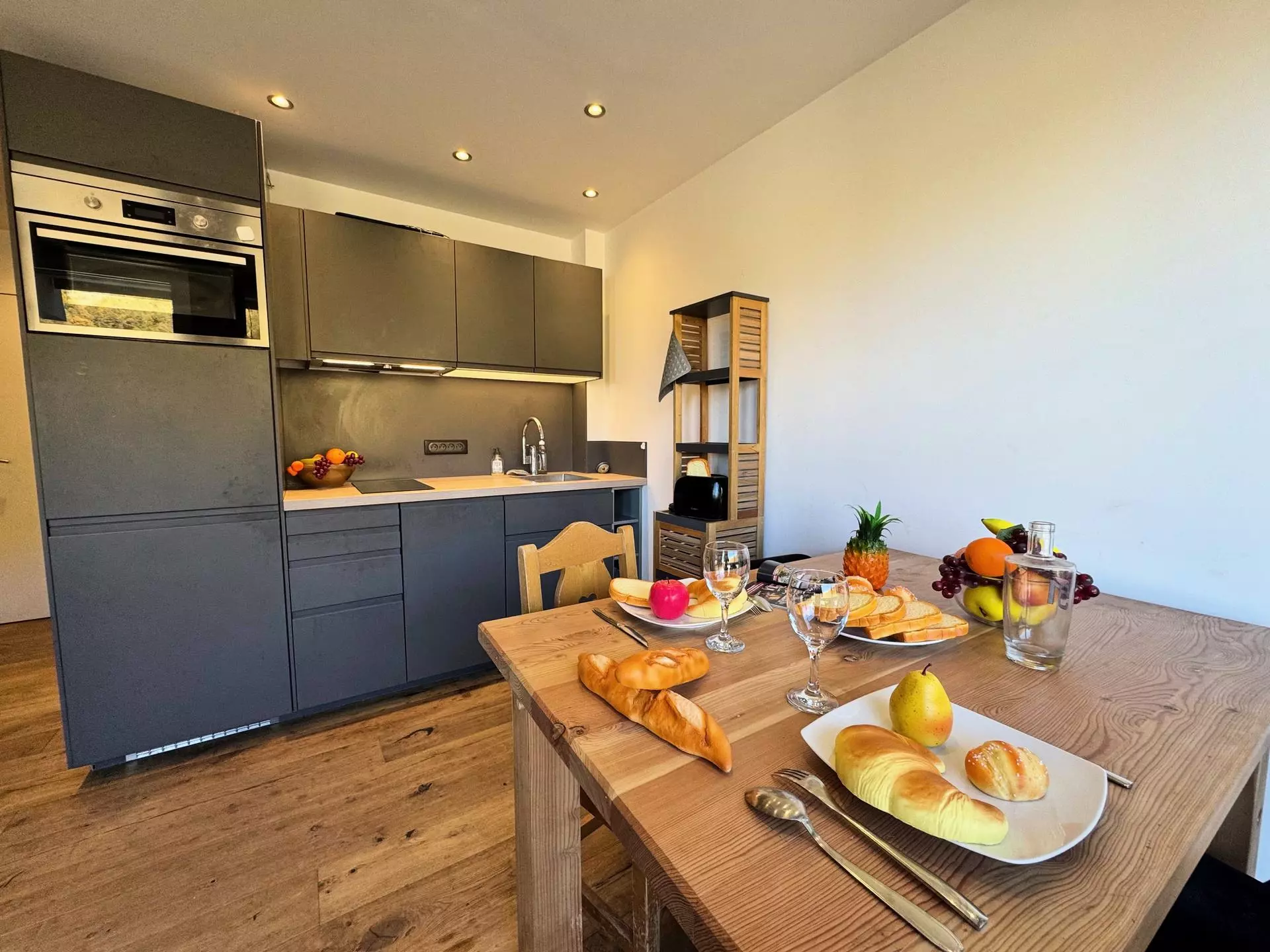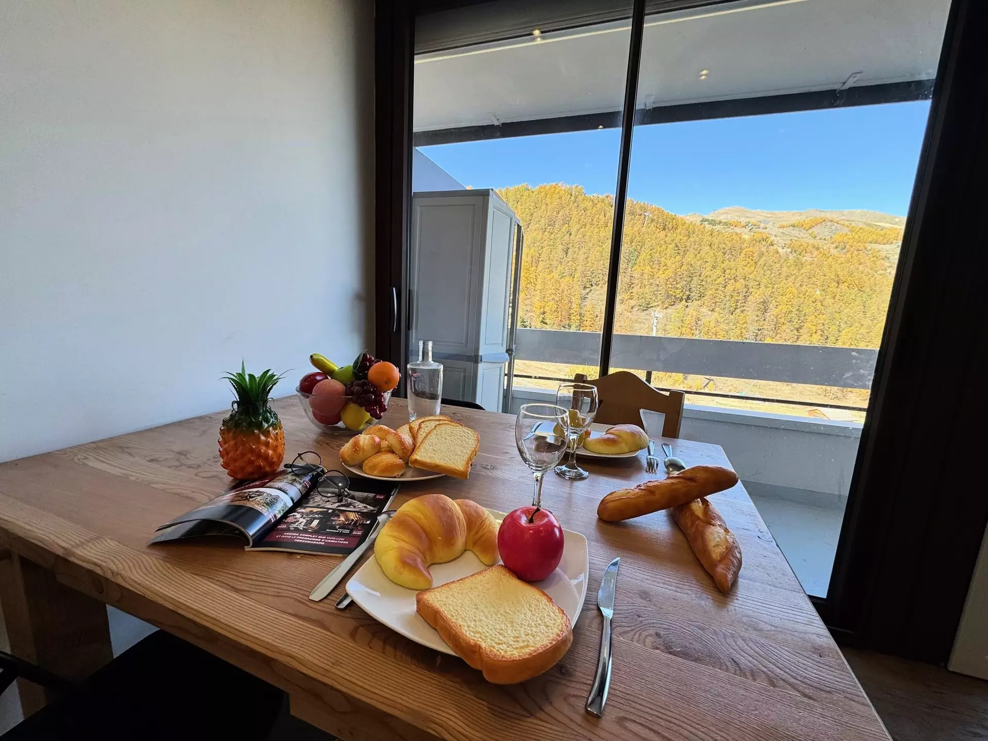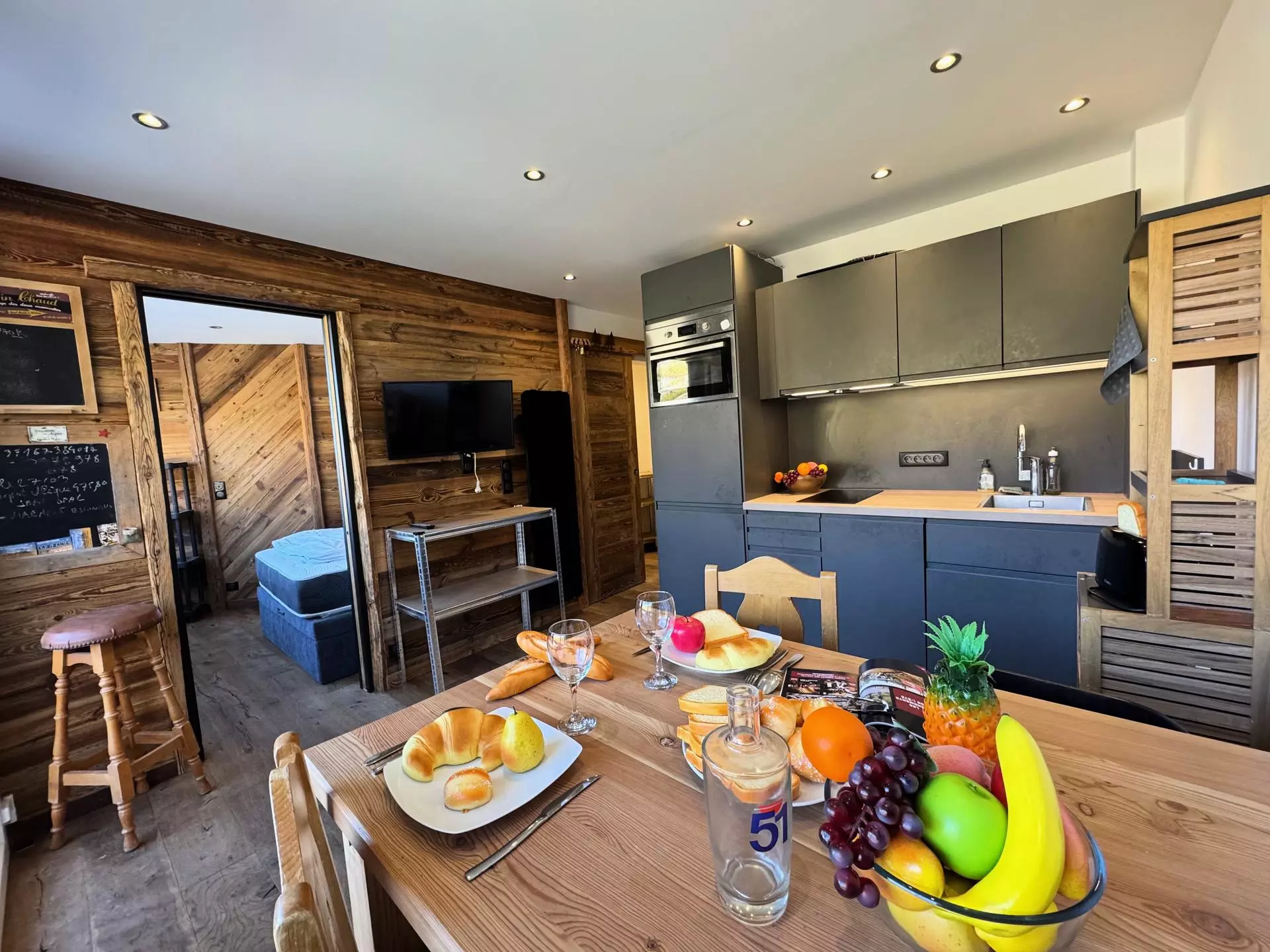 Celui-ci est au pied des pistes avec une orientation EST pour un super petit-déjeuner au soleil sur la terrasse.
