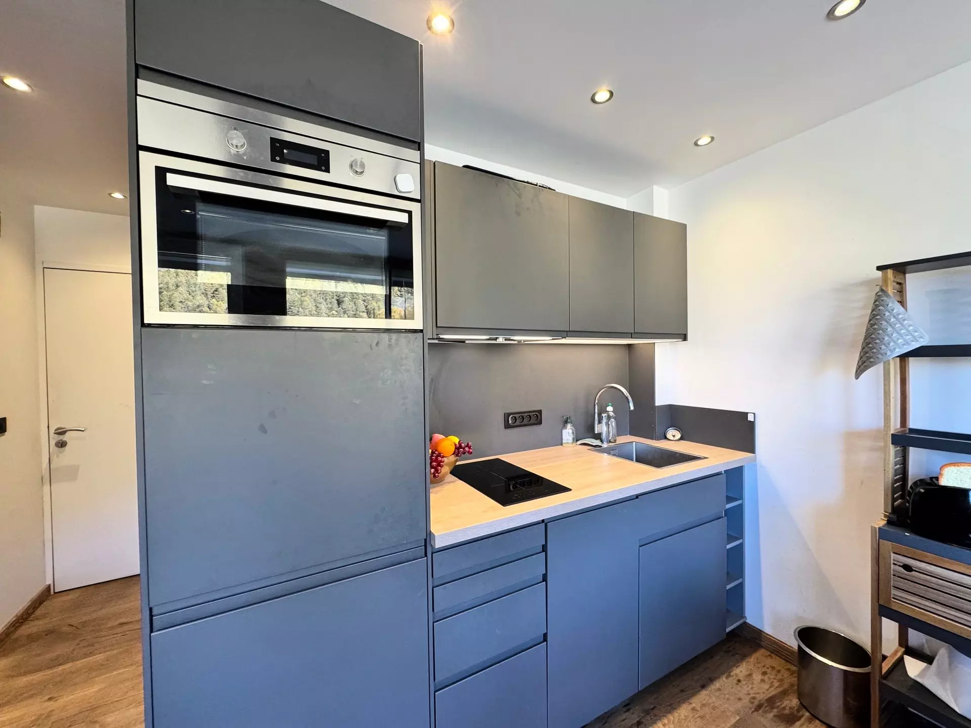 Ce T2 très cocooning, à l'esprit montagne, offre une chambre double en vieux bois, une salle d'eau avec WC, ainsi qu'une cuisine entièrement équipée (lave-vaisselle, réfrigérateur, etc.). Le séjour dispose désormais d'un canapé-lit ainsi que d'une table rétractable. La livraison du canapé et de la table est en cours ; les photos ne sont donc pas actuelles.