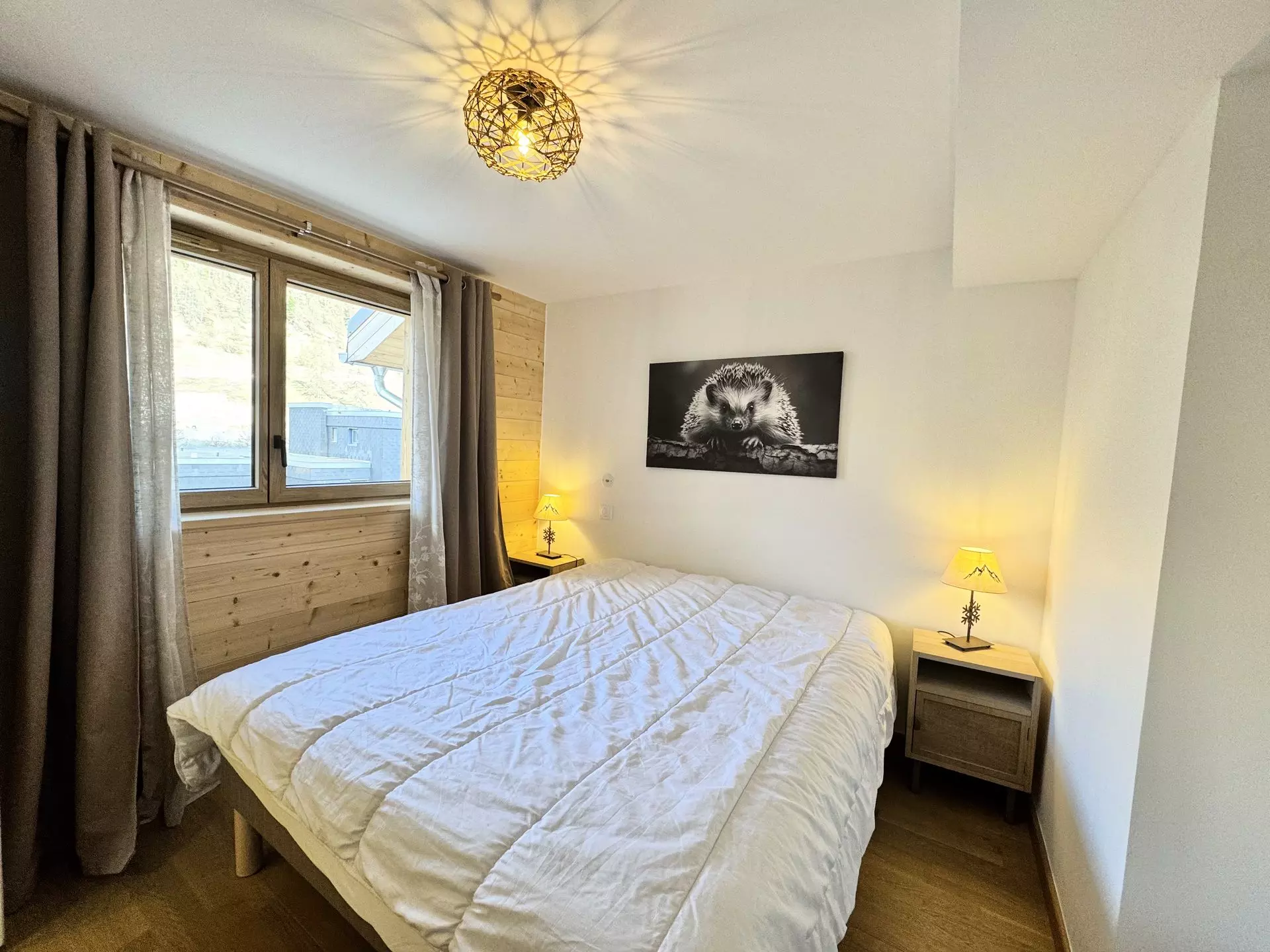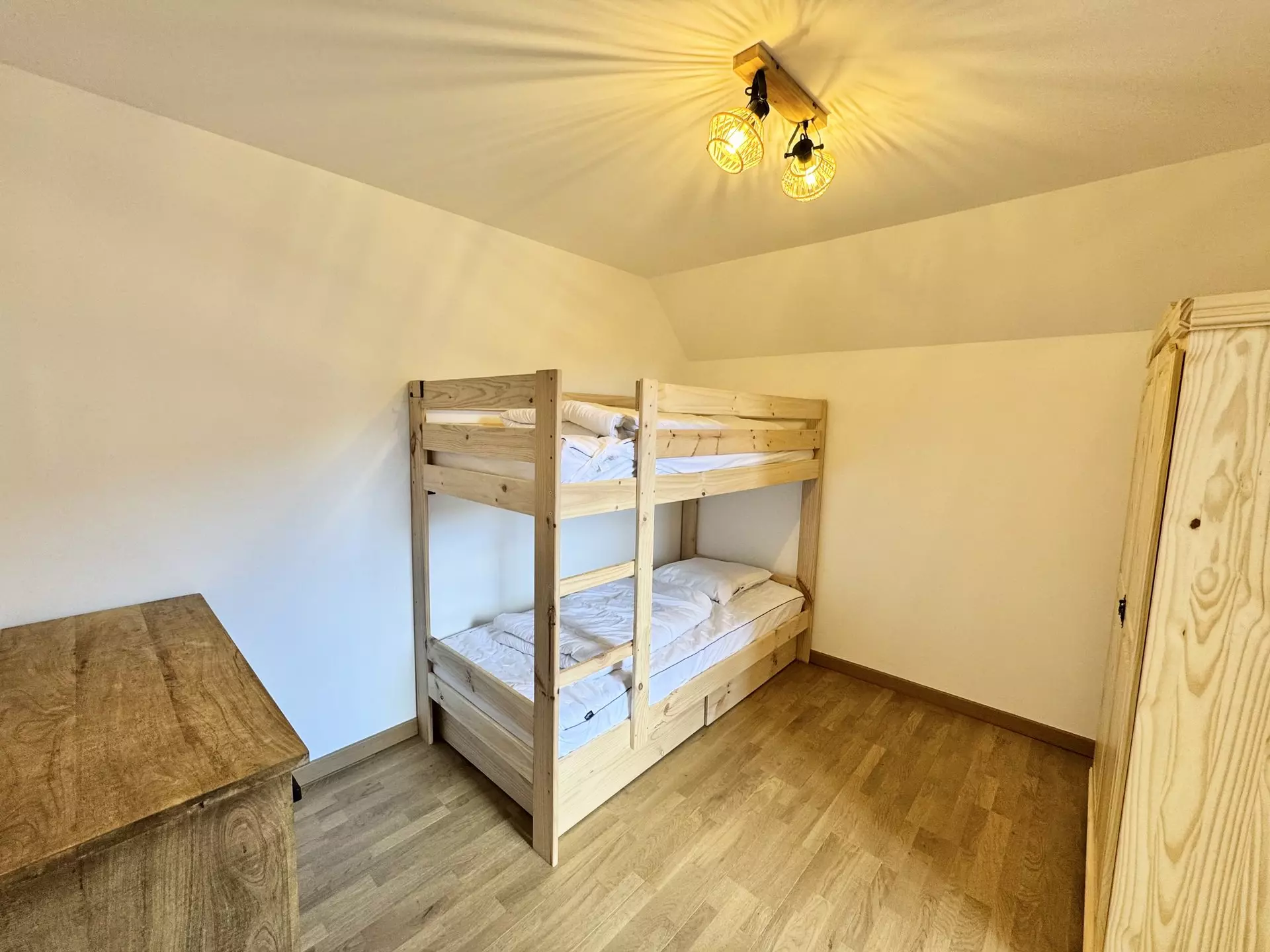 L'appartement se compose d'une première chambre aménagée avec deux coins nuit distincts : un lit double au sol (140 x 190) et un lit double en hauteur (140 x 200). La seconde chambre, spacieuse et lumineuse, est équipée d'un lit double (160 x 200), d'une télévision et d'un dressing. La salle d'eau moderne dispose d'un lave-linge et les WC sont séparés pour plus de praticité.