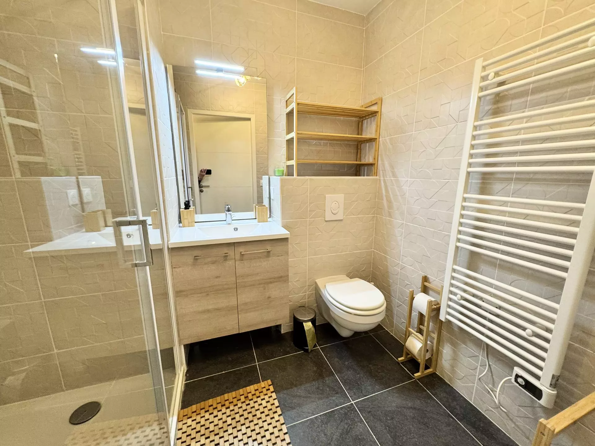 Enfin, vous trouverez une élégante salle d'eau avec WC, parfaitement aménagée pour votre confort.