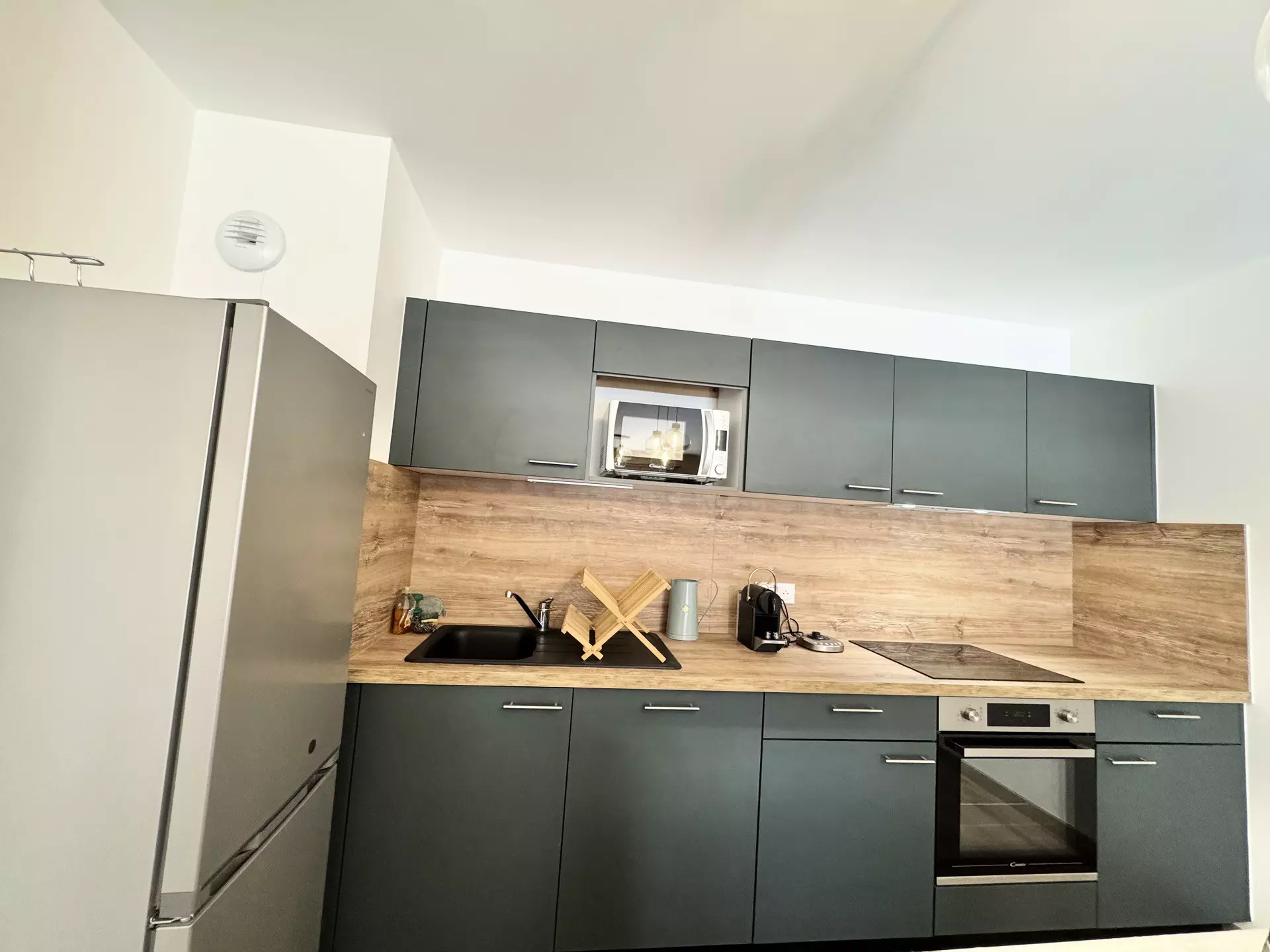 L'équipement de l'appartement comprend: réfrigérateur, four micro-ondes, four traditionnel, plaque à induction, lave-vaisselle et lave-linge.