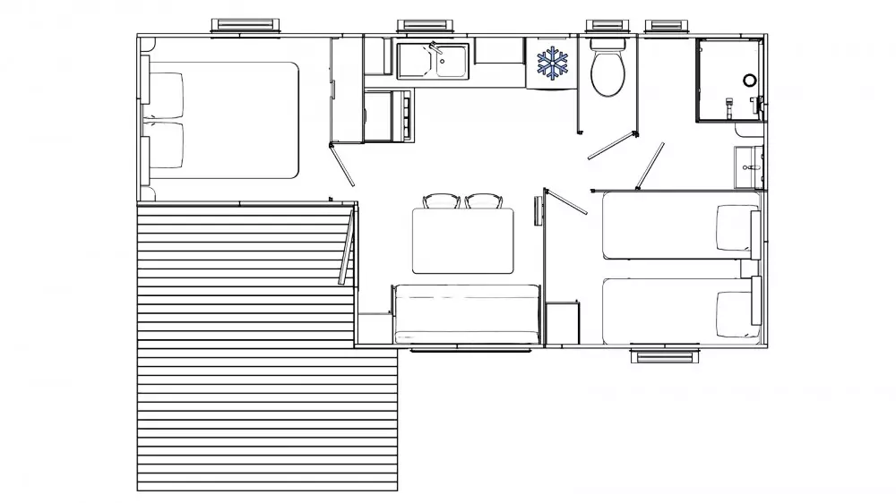 Mobil-home | Comfort | 2 Ch. | 4 pers. | Terrasse surélevée | A/C