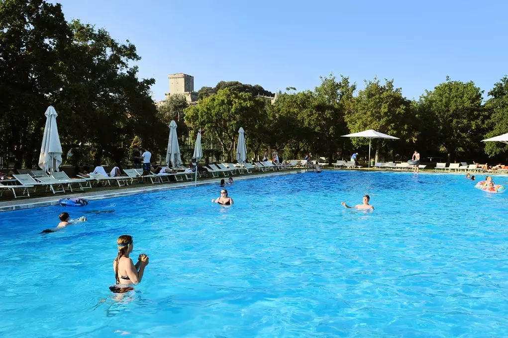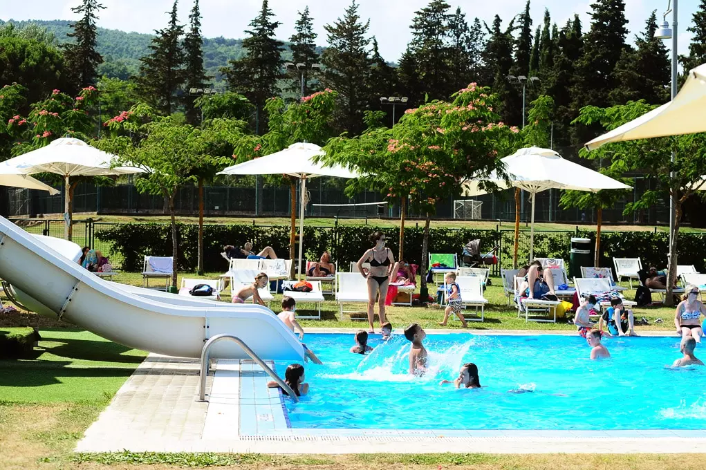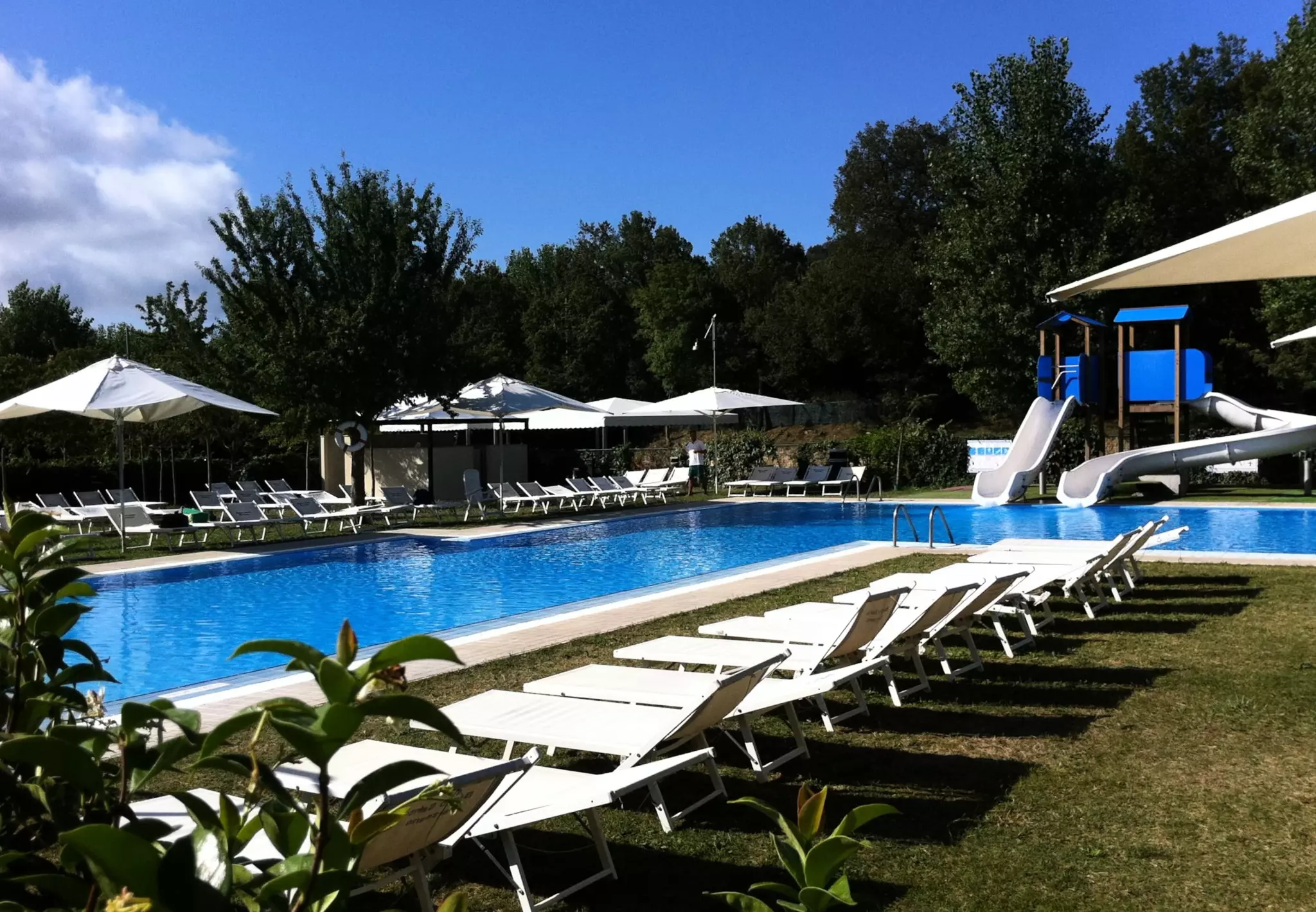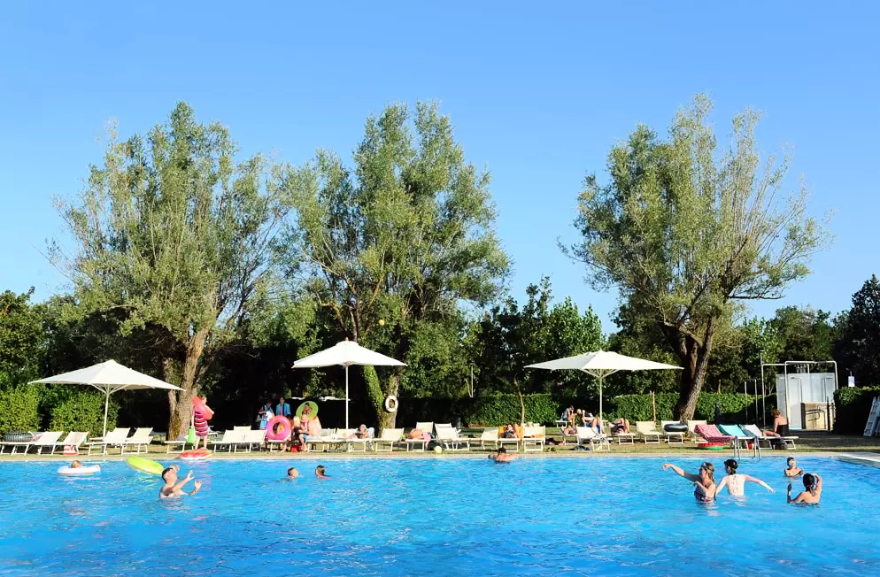 Parco delle Piscine is situated on the plateau of Sarteano, at an altitude of 573 meters, in a shaded area surrounded by green hills, with very pure and healthy air. Three pools and a large whirlpool are fed by the thermal-mineral waters of the Santa Lucia spring, at a temperature of 24°C, with therapeutic qualities for sight and toning effects for the human body. We have large, well-maintained green spaces, like a real garden, we are EMAS certified to protect the environment, our waters are thermal-mineral and not recycled, our tourism is sustainable, and the village of Sarteano is the guardian of a millennial culture. For its evocative and familiar welcome, Il Parco delle Piscine is considered among the best in Europe.