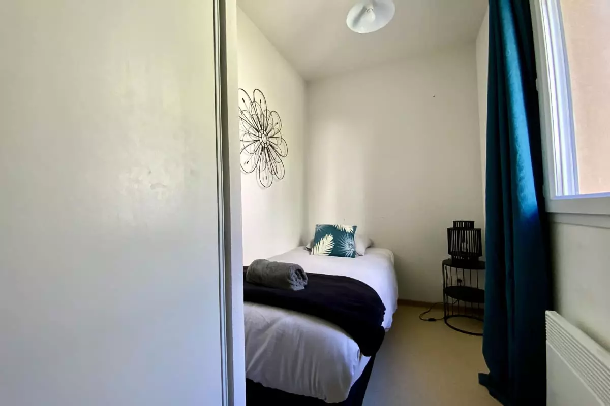 * Une chambre avec 1 lit en 90x190cm et placards aménagés