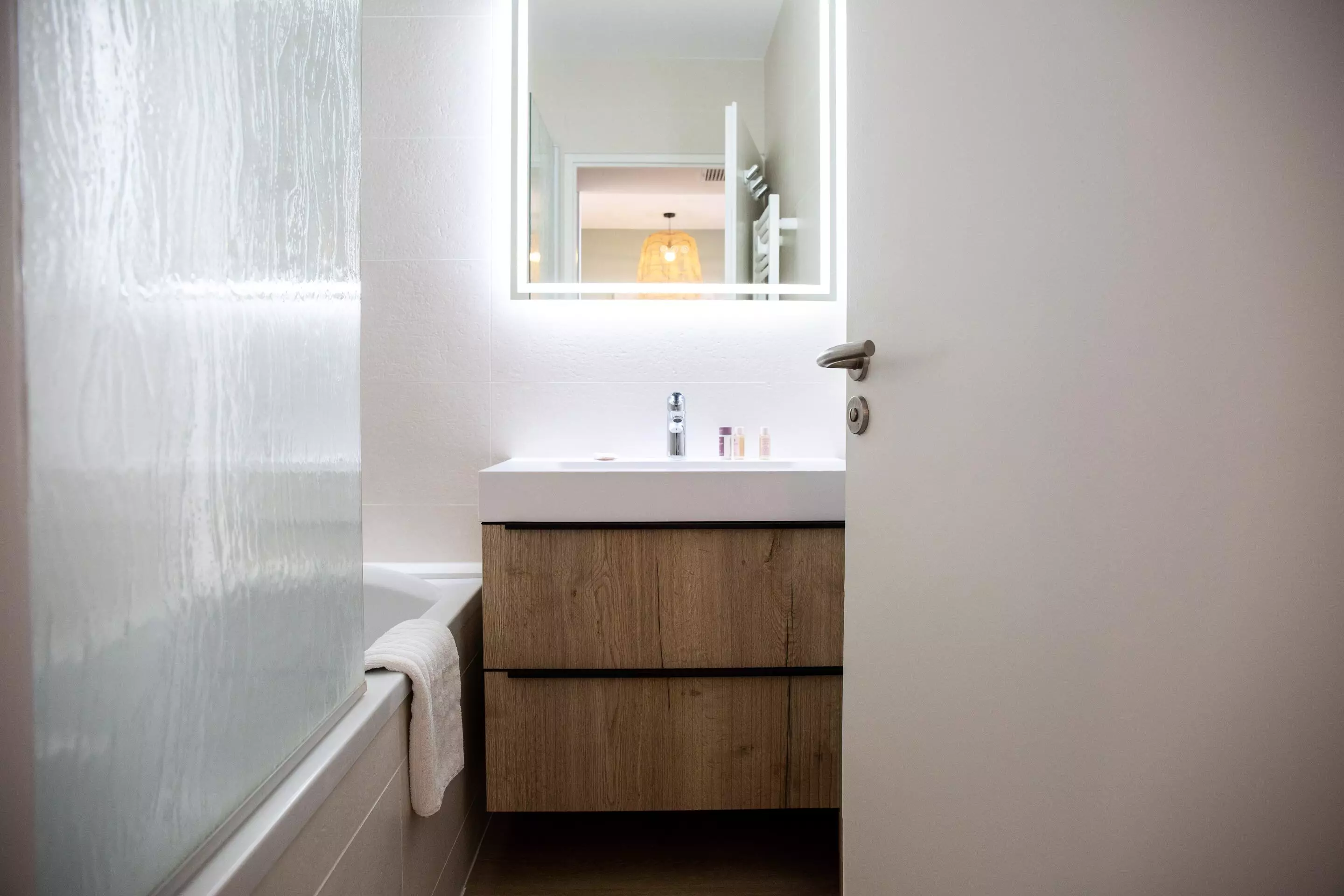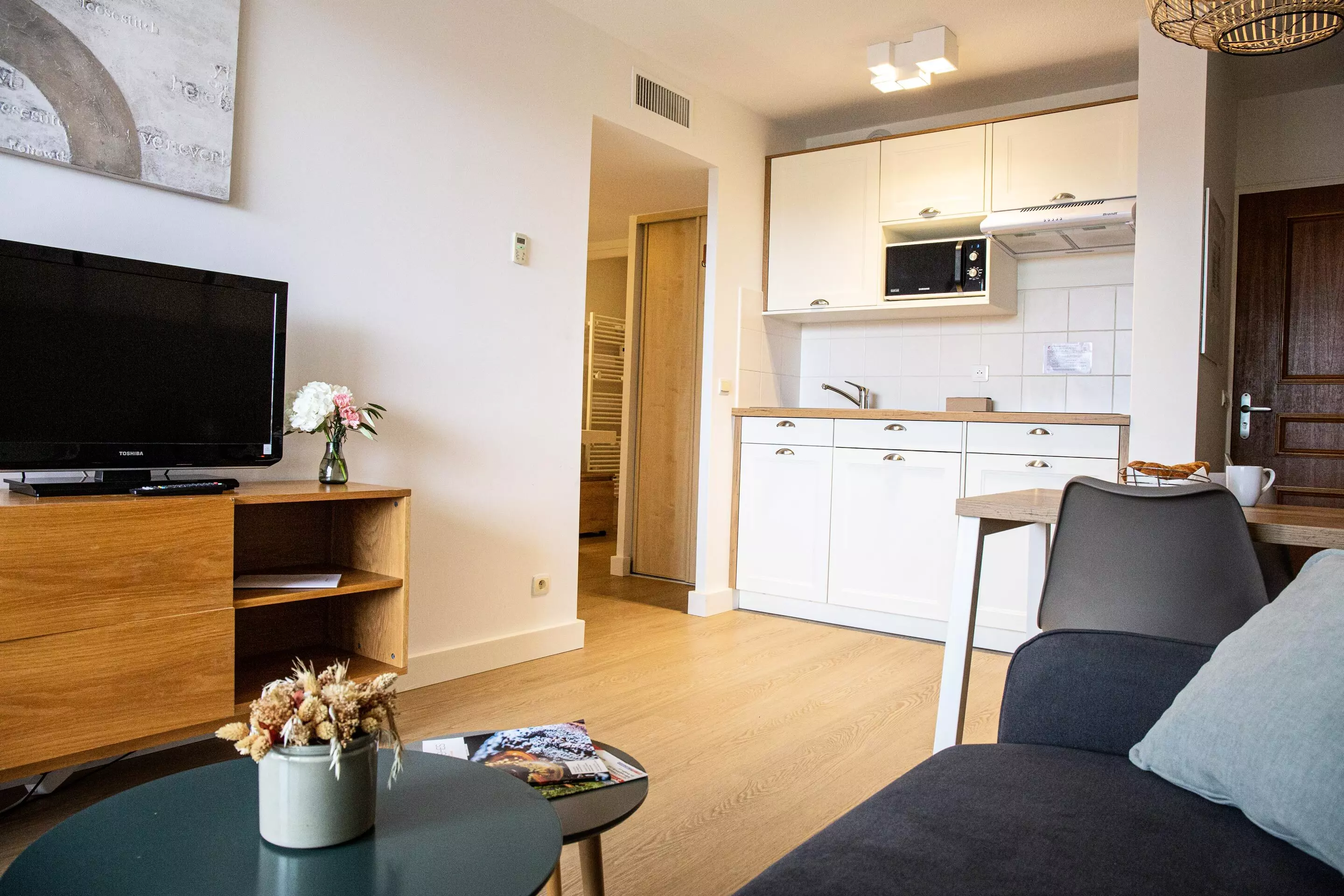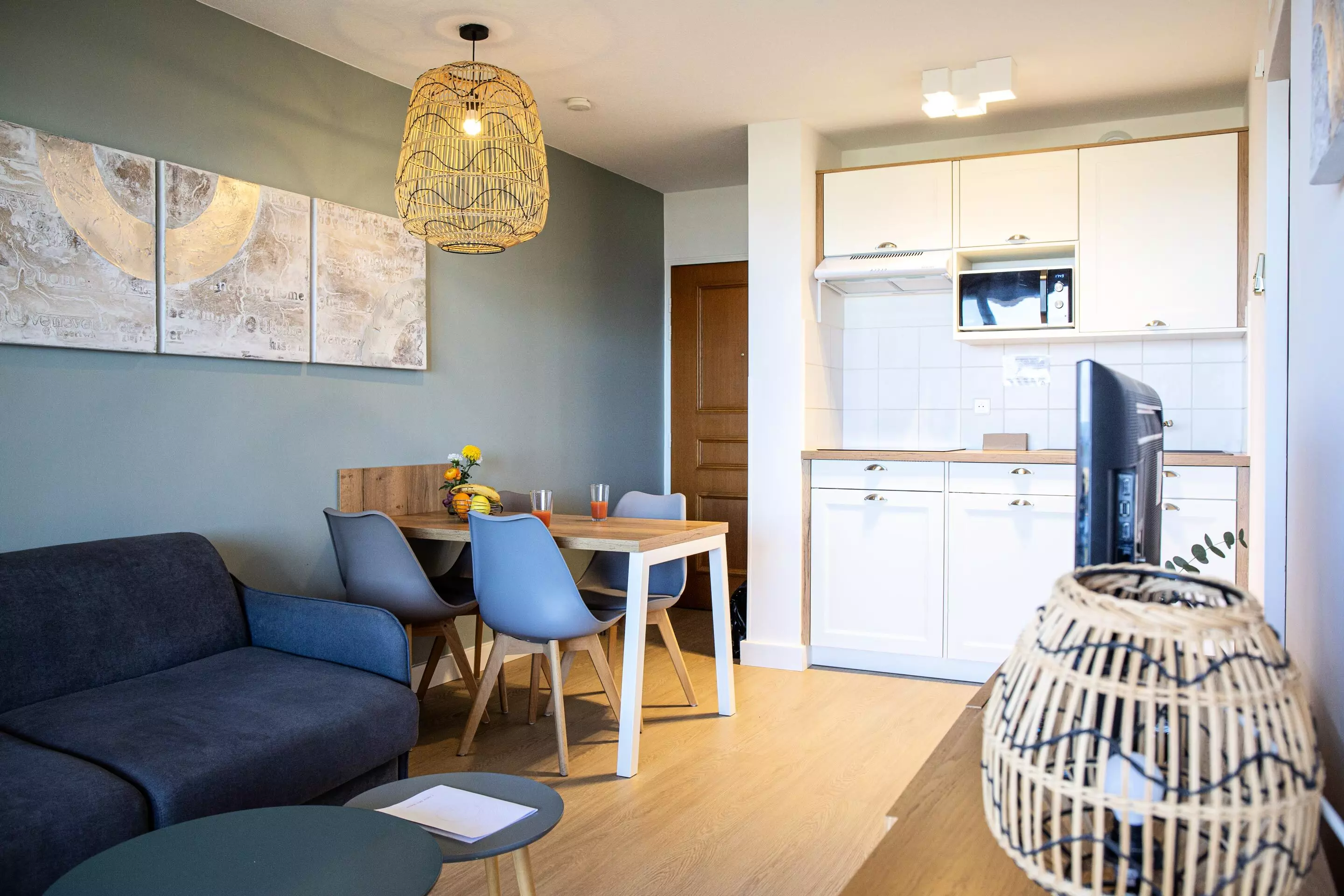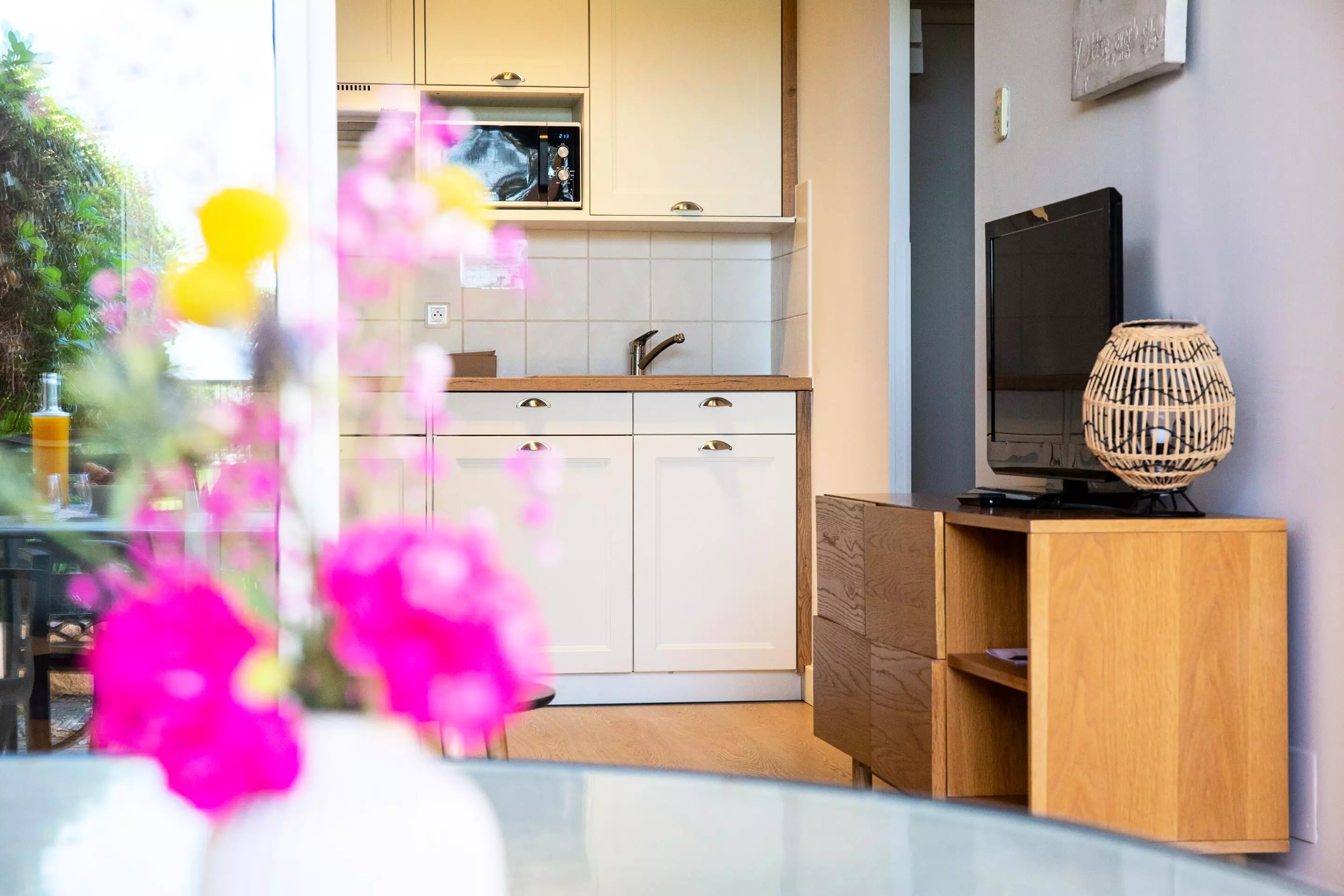 L'équipement comprend des plaques chauffantes, un mini-four, un lave-vaisselle, une télévision et du mobilier pour le balcon.