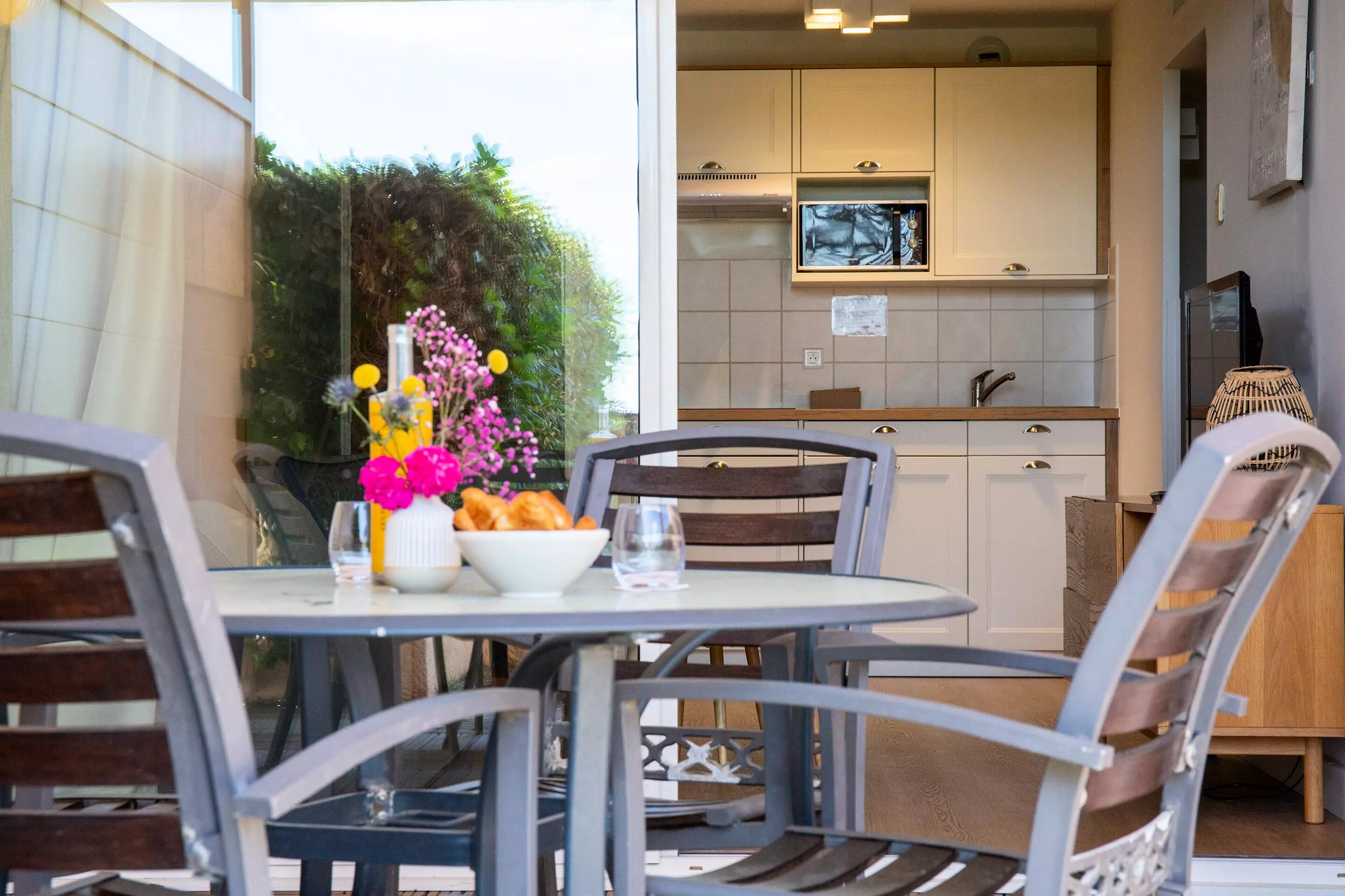 3 pièces 6 personnes. Jardinet privatif orienté côté mer.