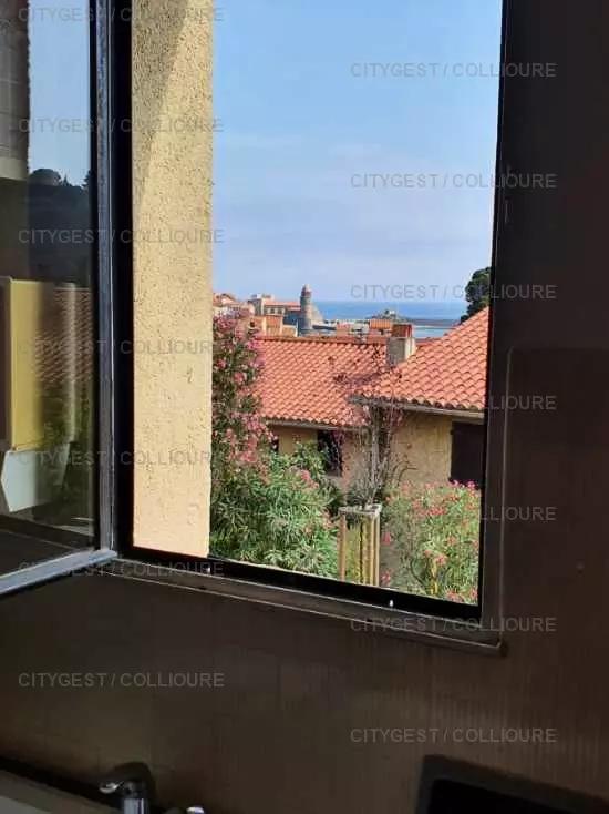 De type F2 équipé pour 4 personnes, avec vue sur la mer et la baie de Collioure, le moulin et le Fort St. Elme. Il se compose d'une entrée, cuisine séparée (plaques gaz, four, lave linge), une chambre (2 lits 90), salle d'eau/WC, séjour (canapé d'angle convertible 140), une terrasse. Résidence avec barrière électrique et possible de vous garer dans les allées de la résidence.