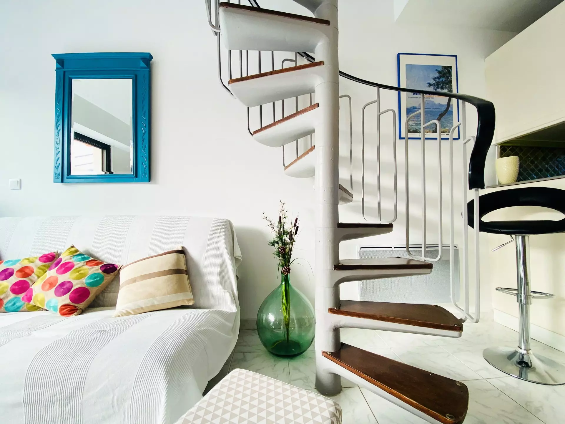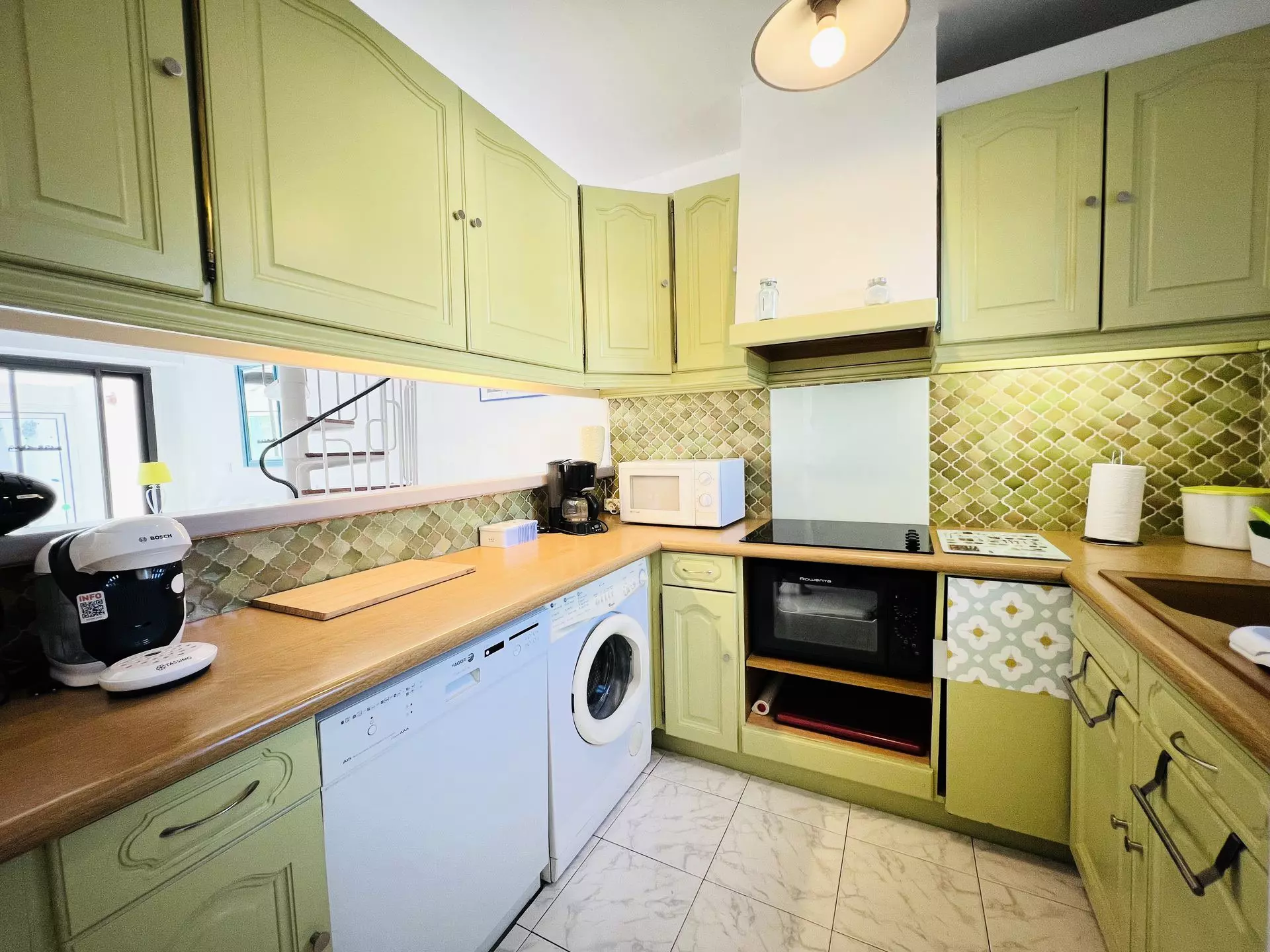 Cette villa dans un quartier très résidentiel possède également 2 chambres à l'étage. Le rez de chaussée se compose d'une cuisine ouverte donnant sur le séjour/salle à manger (équipé d'un clic clac convertible en 140), d'une salle de douche avec toilette, d'une veranda et d'un patio.