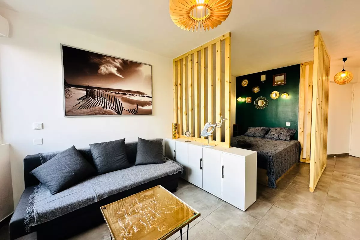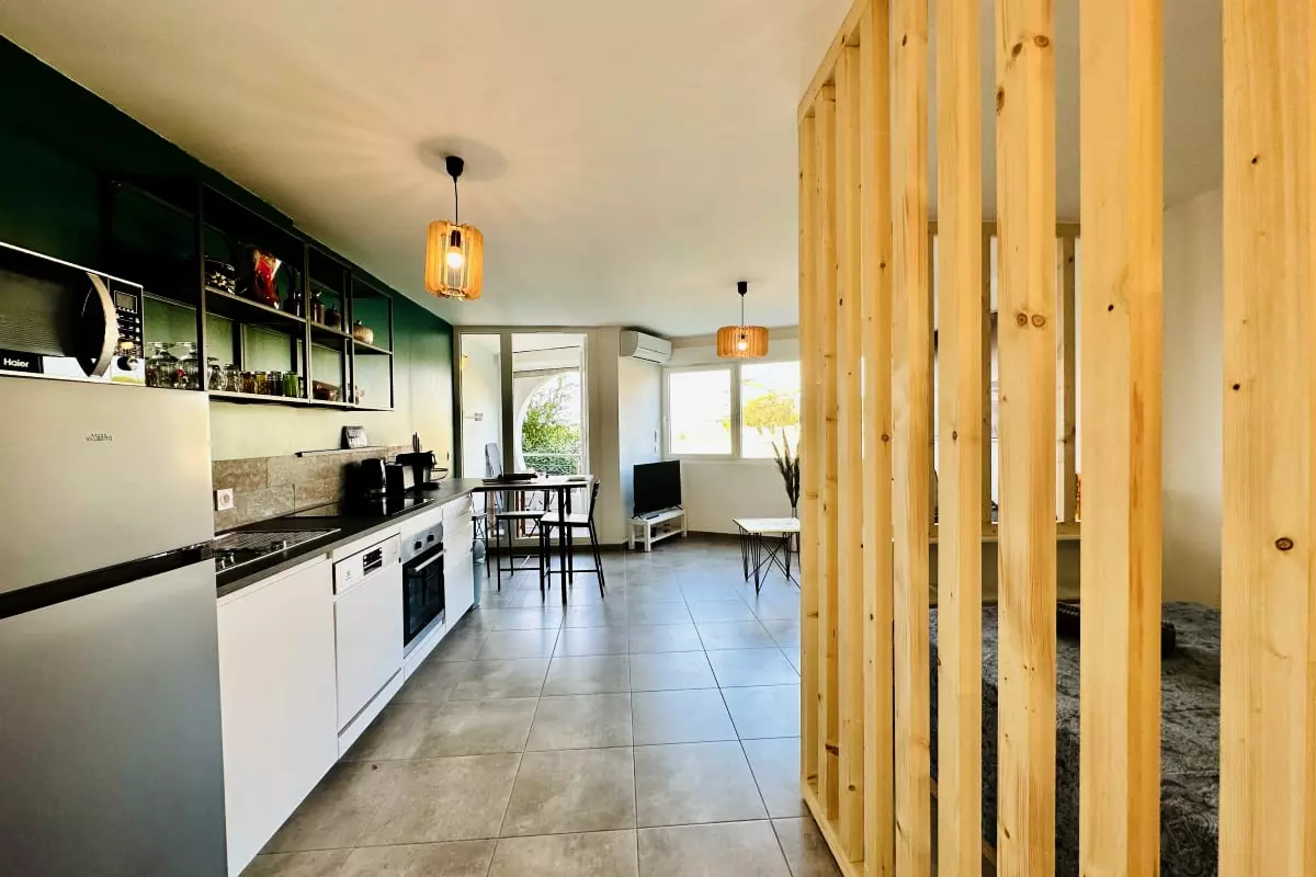 L'Émeraude : appartement de charme à 100 m de la plage au Grau du Roi, avec terrasse privative et tout confort. Idéal pour des vacances reposantes à deux pas des commodités et du port de pêche.