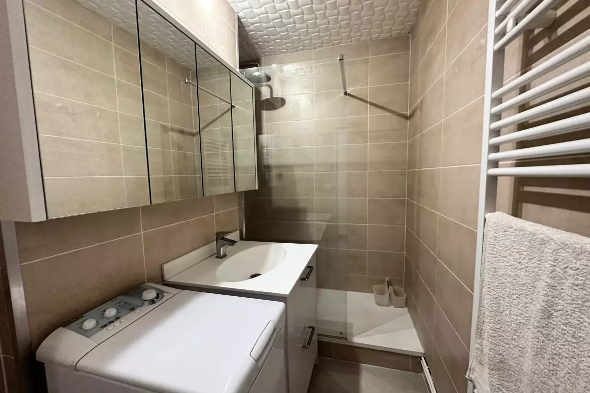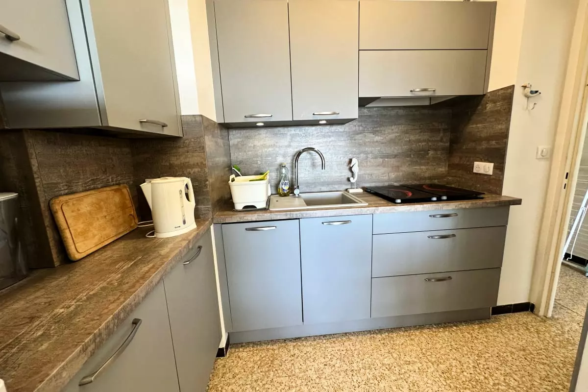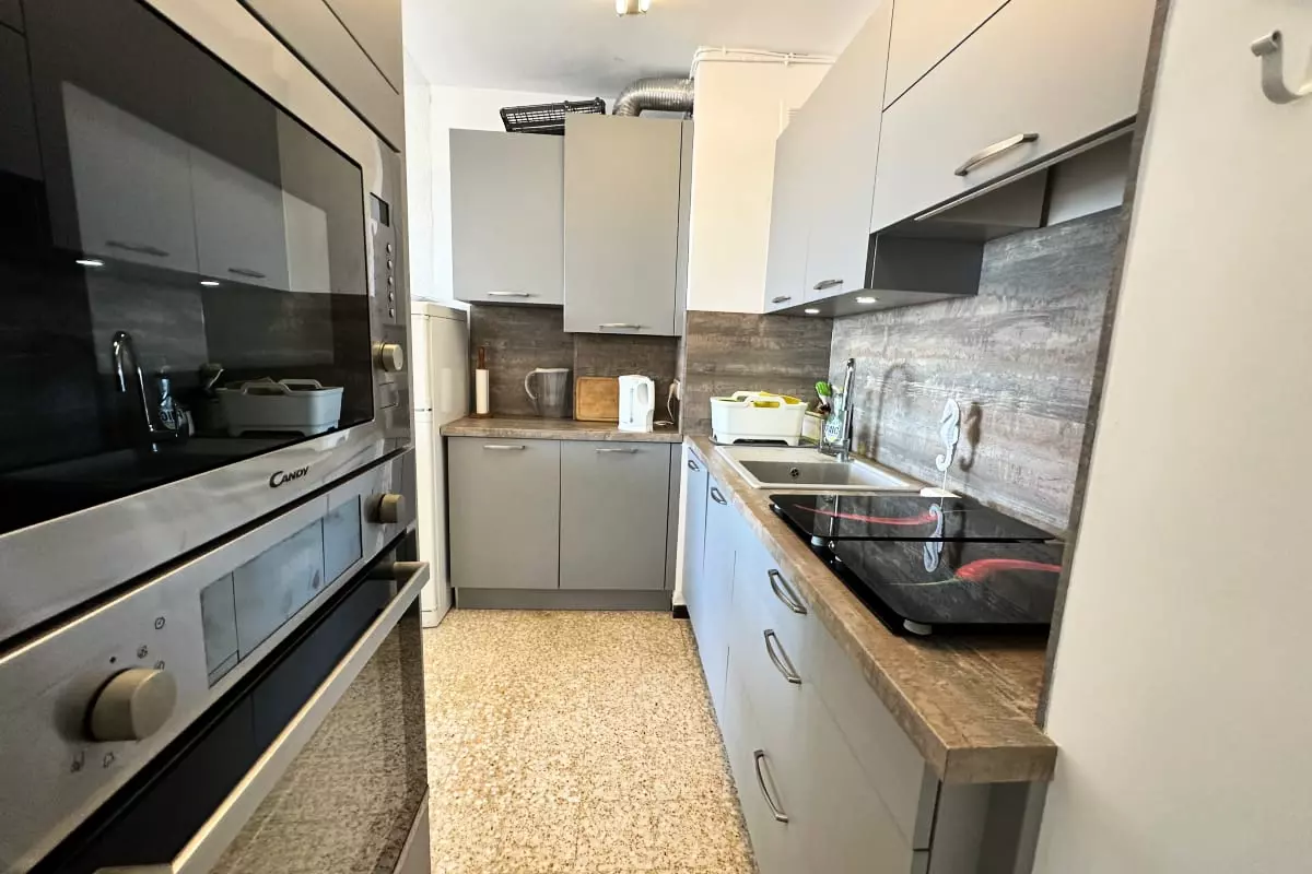 L'appartement se compose d’une entrée, d’une cuisine ouverte sur la pièce à vivre, baignée de lumière, avec accès à une terrasse couverte offrant une petite vue sur la mer. La cuisine est entièrement équipée pour votre confort, avec notamment une machine à café Nespresso, une bouilloire, un grille-pain, etc. La salle d'eau moderne dispose d’une douche à l'italienne, et la chambre est un véritable havre de paix, avec un lit double, un rangement pratique et une literie de qualité pour des nuits reposantes.