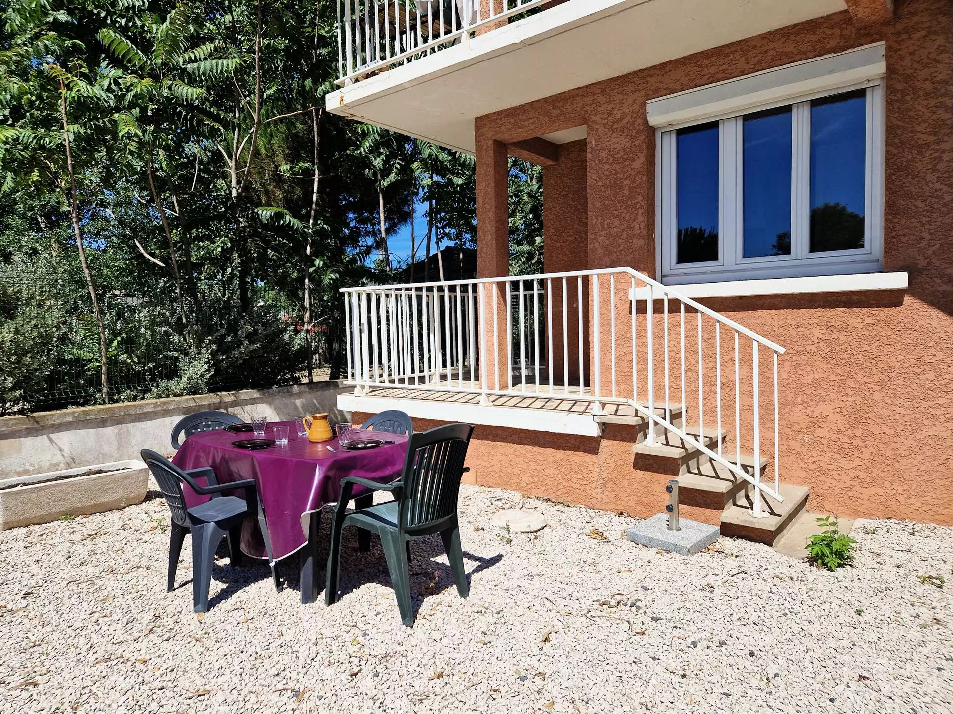 Profitez d'une grande terrasse ouverte avec un salon de jardin pour vos repas en extérieur et d'un petit balcon pour vos moments de détente.