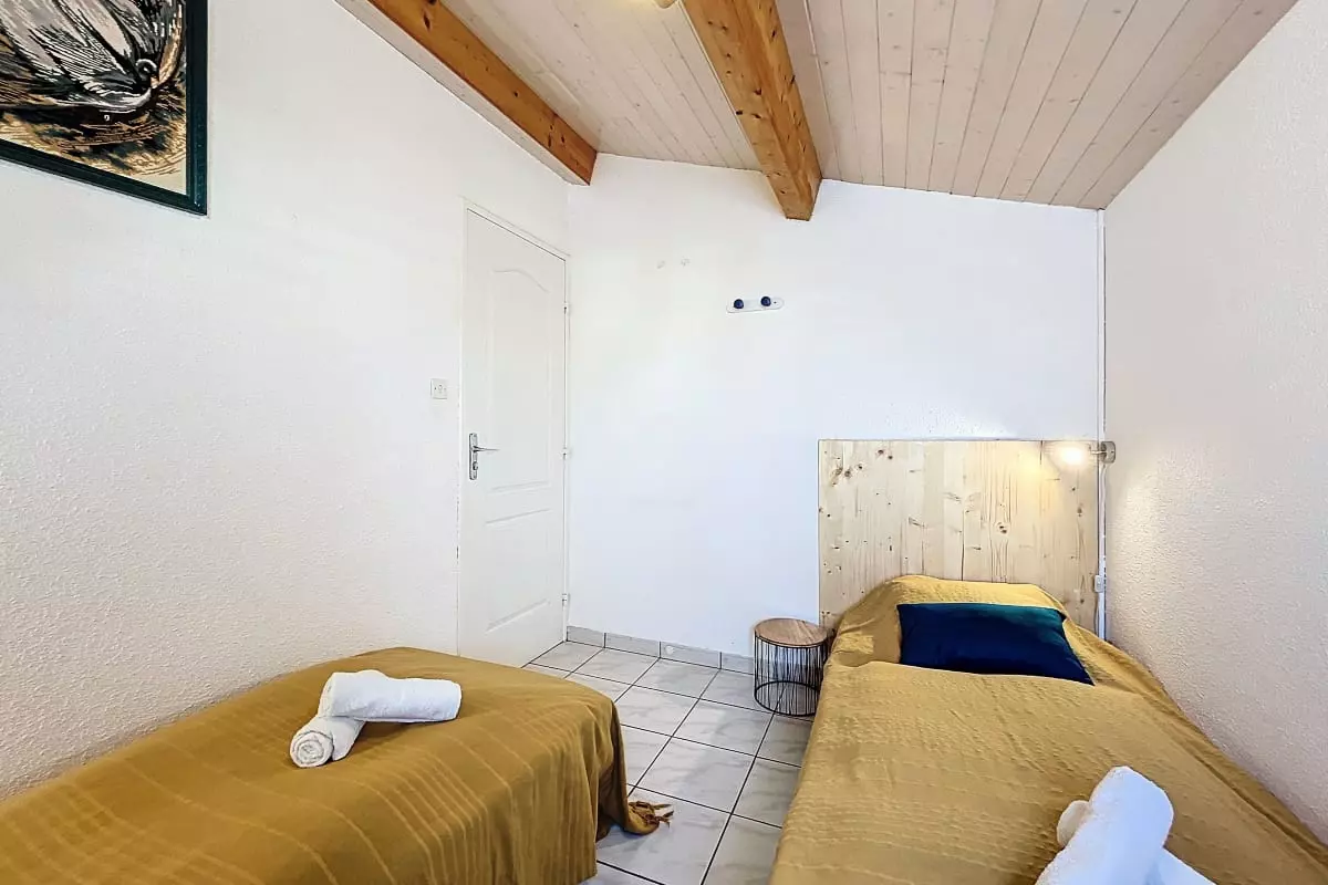 - deux chambres avec un lit double, un lit pour bébé et deux lits simples ;