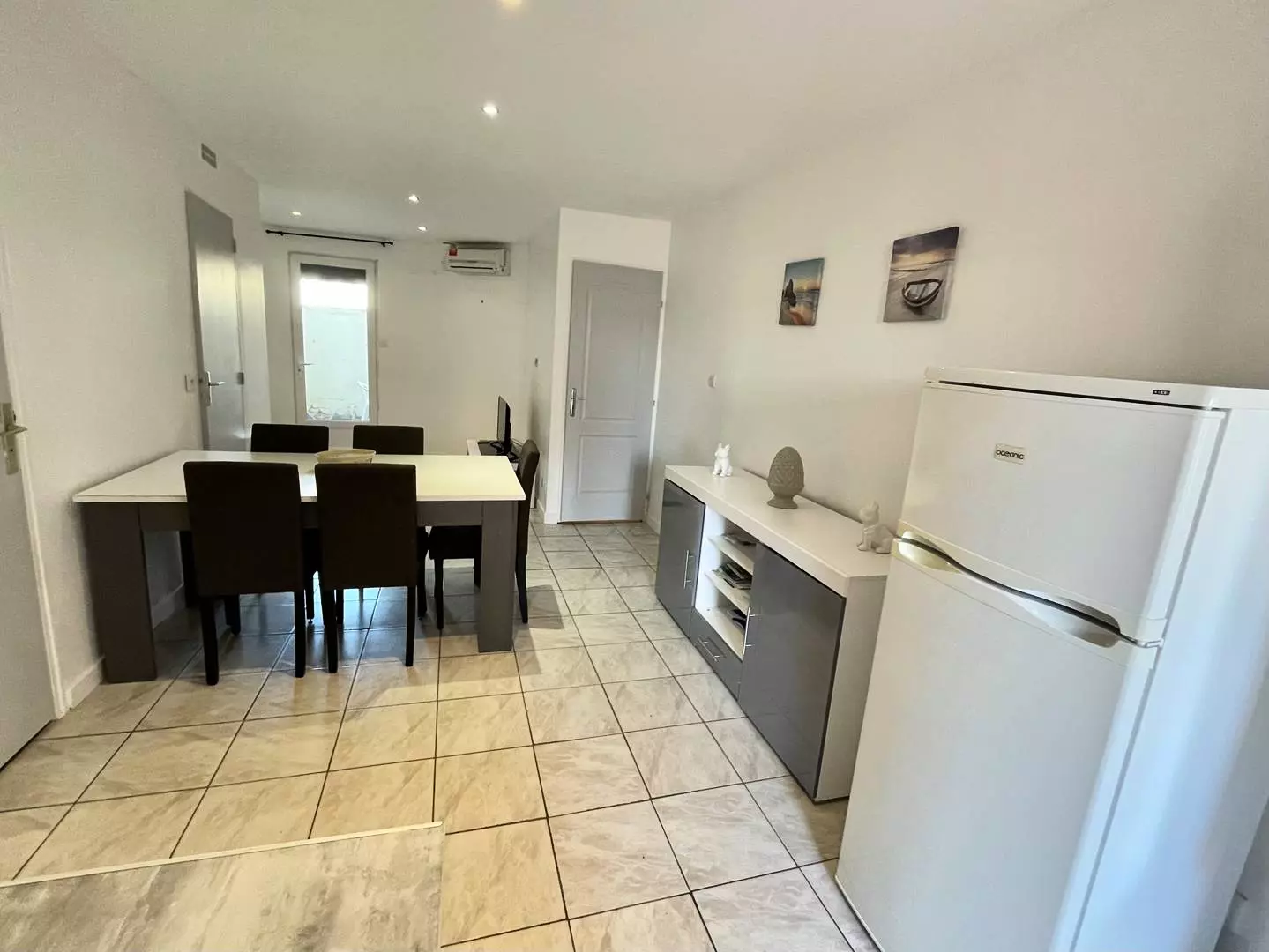 PORT LA NOUVELLE: Climatisé: spacieux appartement T2 en rdc avec cour arriere comprenant cuisine, séjour avec climatisation, 1 chambre