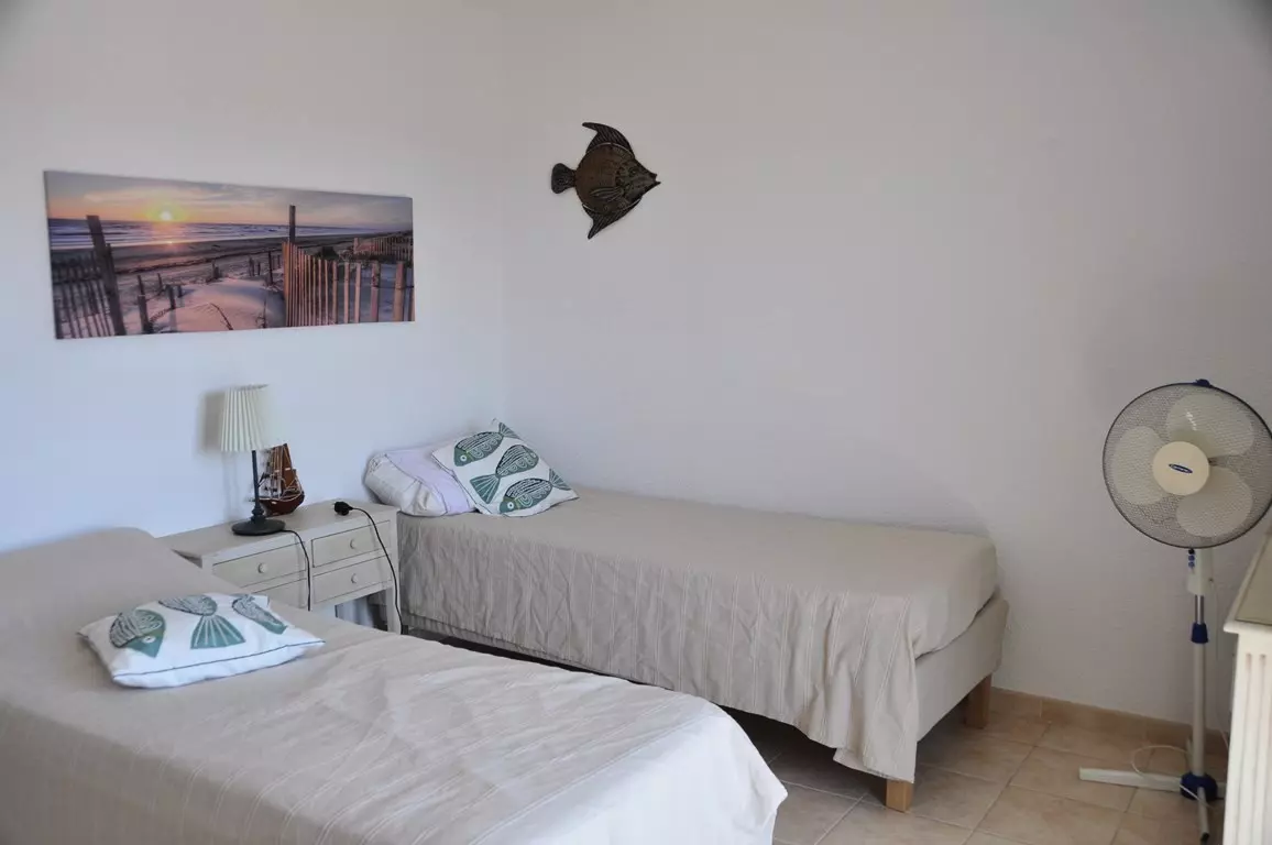 Au calme et à proximité de la plage et du centre-ville, ce logement de 75 m², pouvant accueillir jusqu'à 5 personnes, dispose de deux chambres, d'un grand séjour avec cuisine ouverte, de deux salles d'eau et d'une belle terrasse avec une vue dégagée sur la mer.