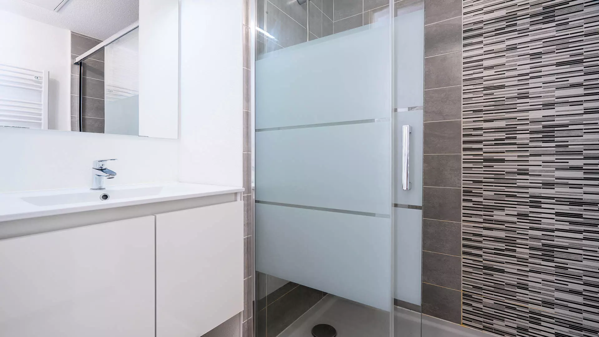 ? Salle de bain : douche italienne, porte-serviette, sèche-cheveux, sèche-serviette - confort et praticité assurés.