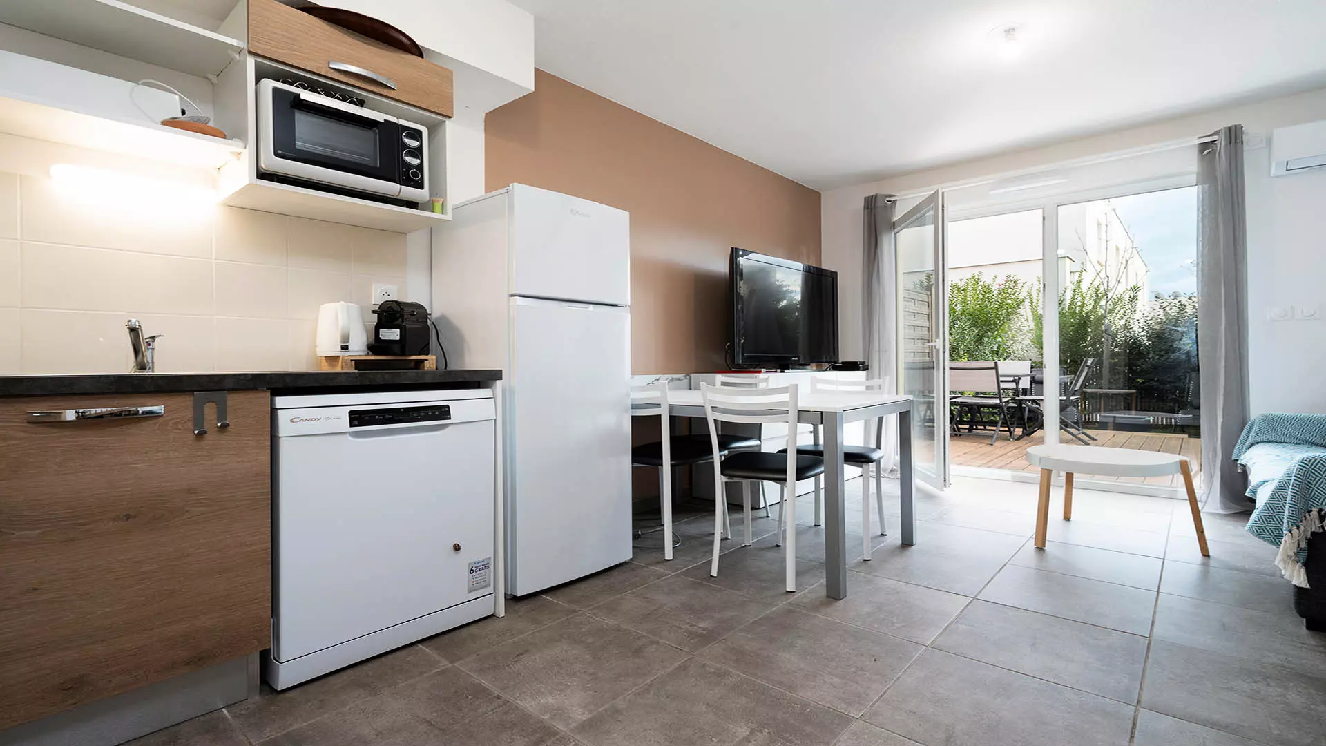 ? Cuisine : réfrigérateur, mini-four, lave-vaisselle, couverts, ustensiles, grille-pain, bouilloire, cafetière à dosettes Nespresso - de quoi cuisiner comme à la maison (ou presque !).