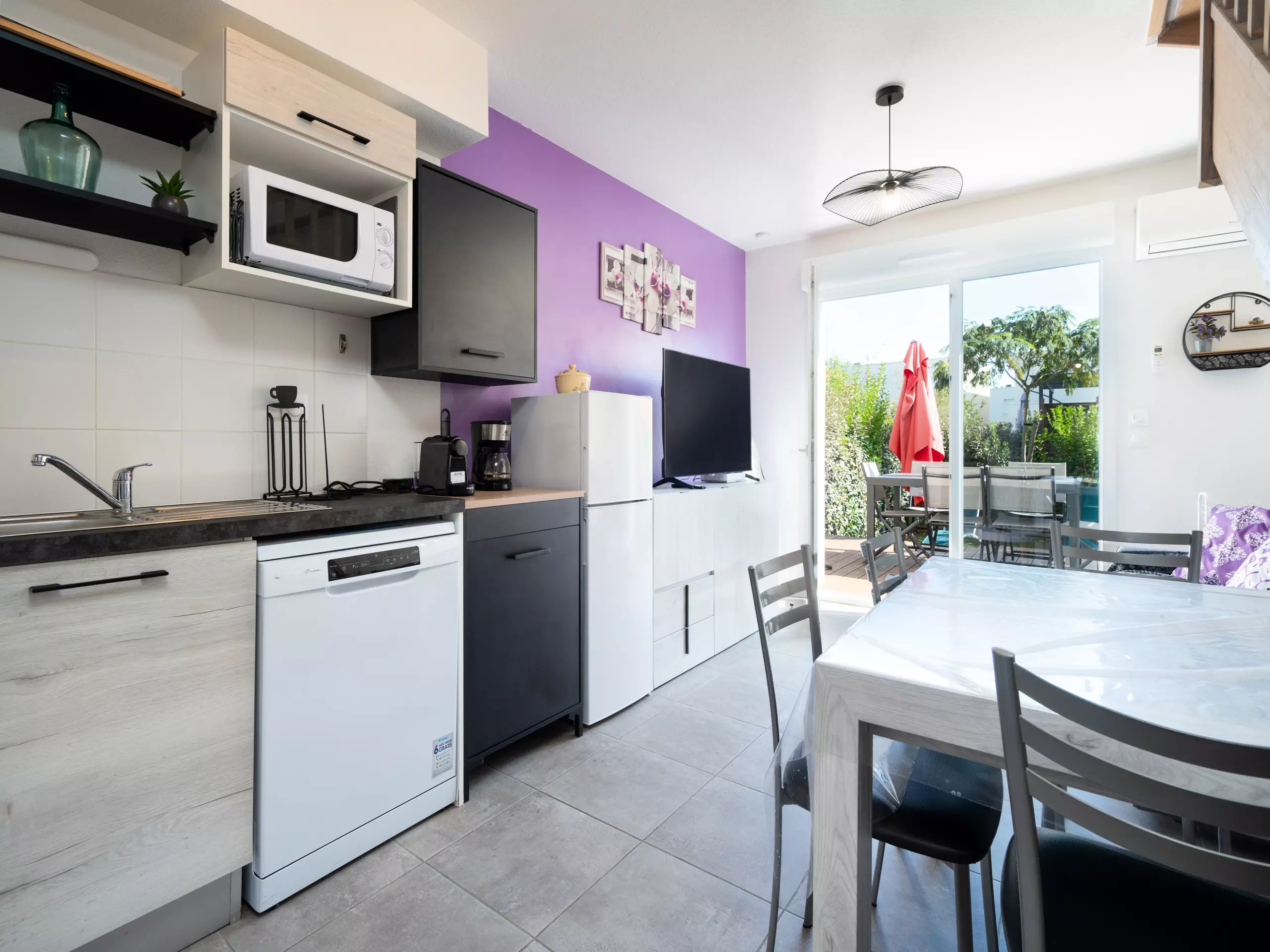 - Cuisine équipée (réfrigérateur, micro-ondes, bouilloire, grille-pain, plaque de cuisson (électrique) lave-vaisselle, cafetière à capsules Nespresso, vaisselle et ustensiles de cuisine) ;