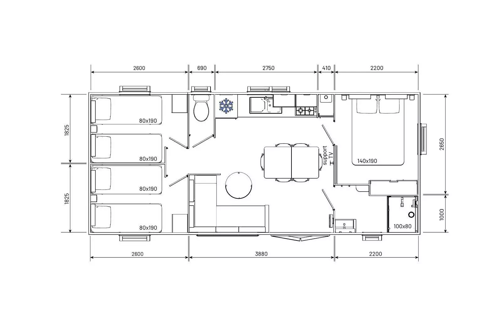Mobil-home | Comfort | 2 Ch. | 4 pers. | Terrasse surélevée | A/C | TV