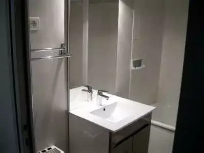 L'appartement comprend des plaques électriques, un réfrigérateur/congélateur, un mini-four électrique, une cafetière, un lave-vaisselle, un grille-pain, une bouilloire et une télévision.