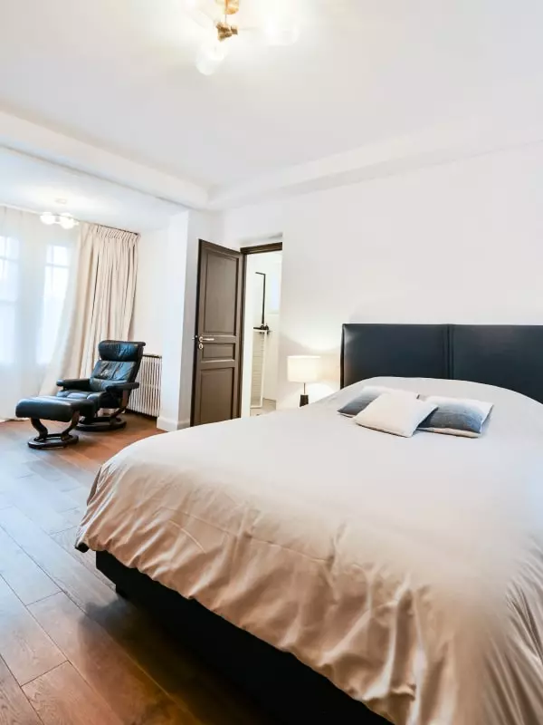 Vous trouverez cinq chambres confortables, chacune équipée d’un lit double 160x190, parfaites pour des nuits paisibles. La maison dispose également d’une cuisine toute équipée pour préparer vos repas, de quatre salles de bain pour un maximum de confort, et d’un salon accueillant pour vous détendre après une journée de balade.