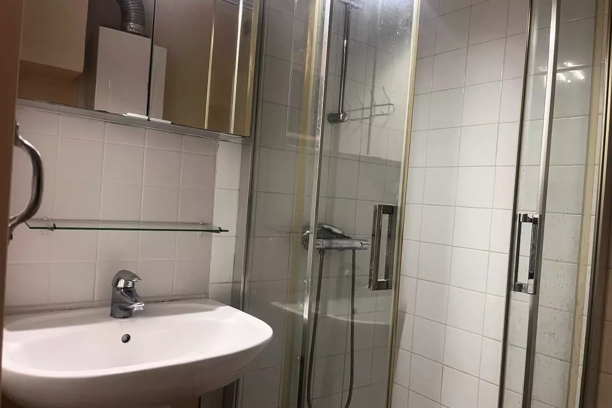 La salle de douche fonctionnelle et la cuisine entièrement équipée, comprenant tous les appareils nécessaires tels que la télévision, la machine à café, le micro-ondes et le four, vous permettront de profiter pleinement de votre séjour.