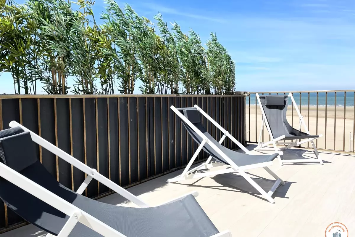 Emplacement EXCEPTIONNEL ! Superbe appartement de 80m² comprenant une terrasse de 40m², situé en front de mer avec accès privatif à la plage des Roches Noires!