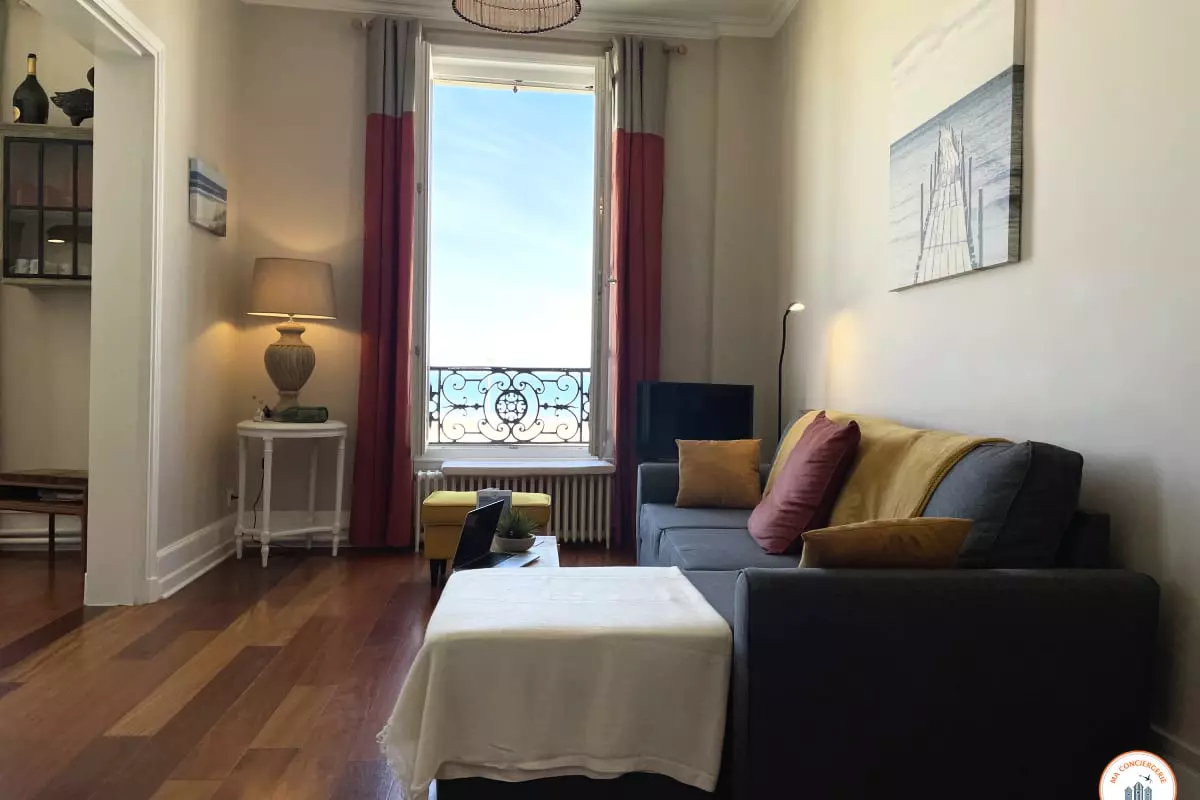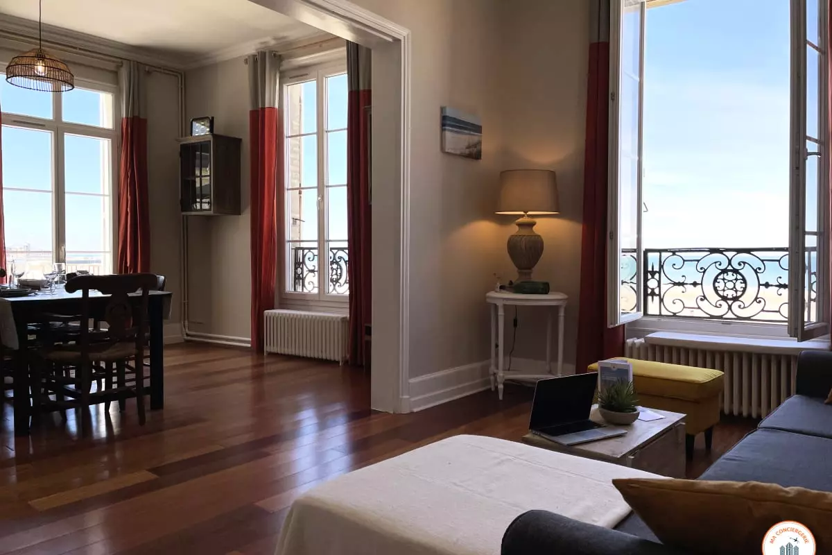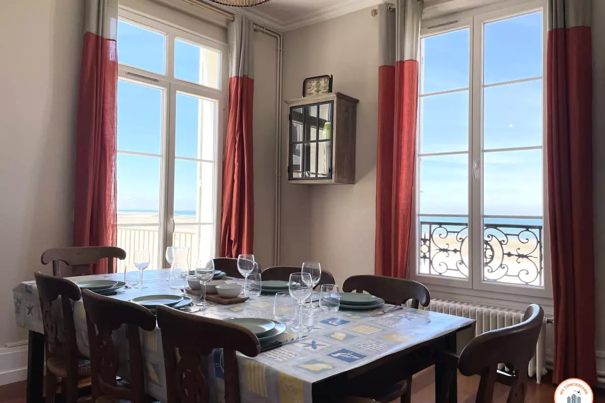Notre charmant appartement se situe au sein de la résidence les Roches Normandes, juste à côté des célèbres Roches Noires où ont séjourné Marguerite Duras et Marcel Proust. Vous serez immédiatement séduit par sa terrasse en front de mer et sa vue panoramique exceptionnelle sur la plage.