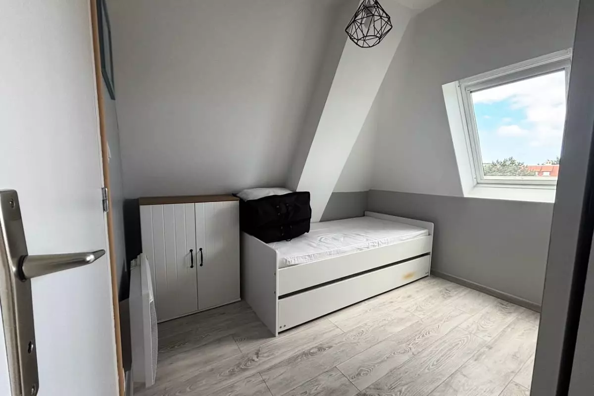 - une chambre avec un lit gigogne, soit 2 lits simples ;